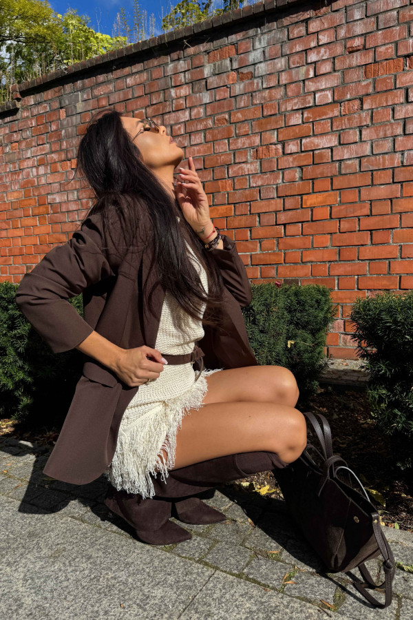 - Marynarka zapinana na jeden guzik czekoladowa KORNELIA