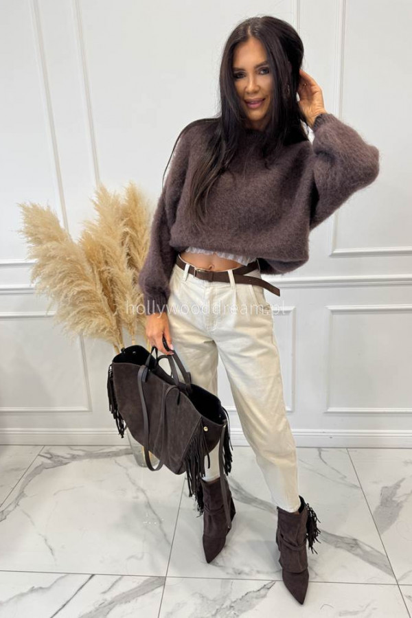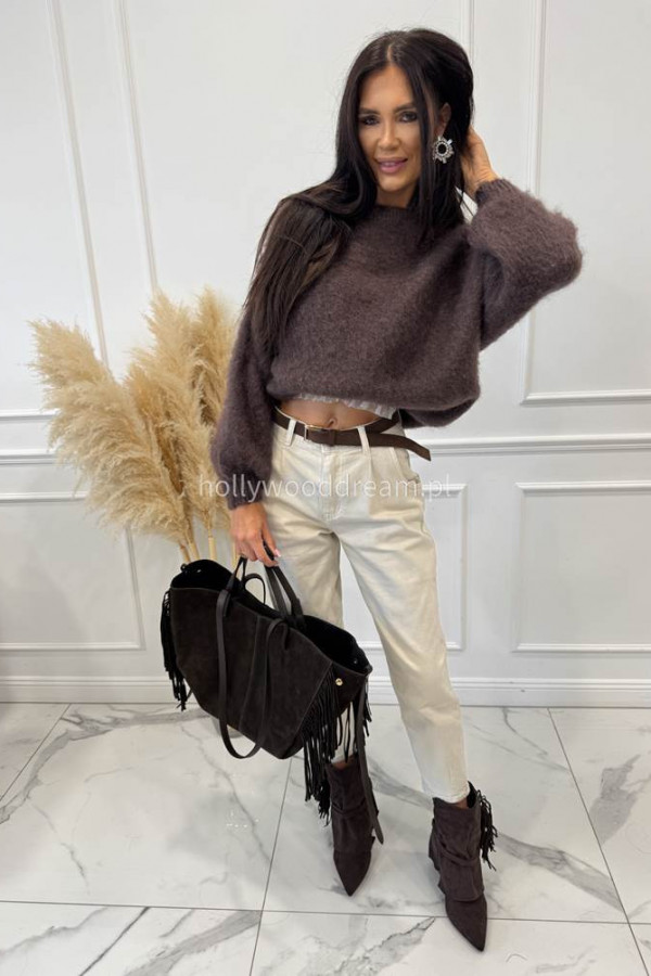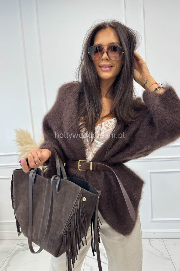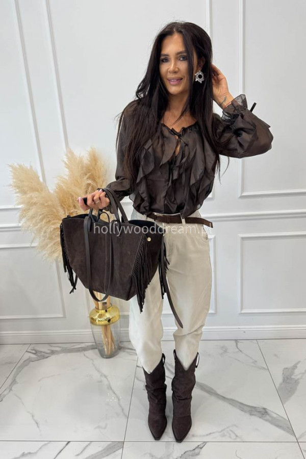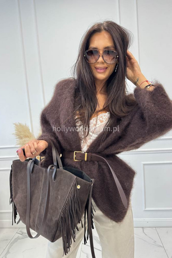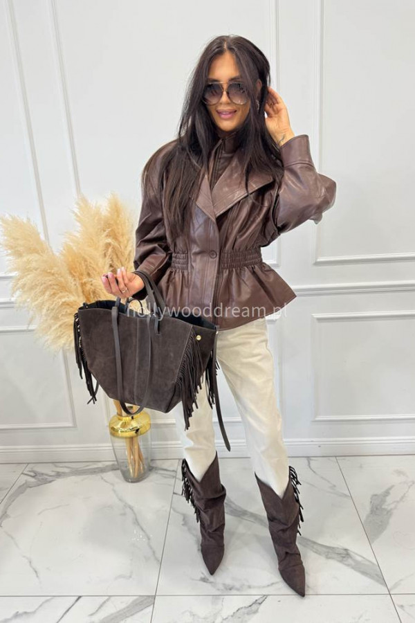 - Torebka shopper zamszowa duża z frędzlami brązowa KAJA
