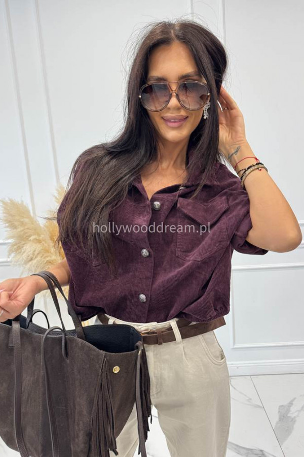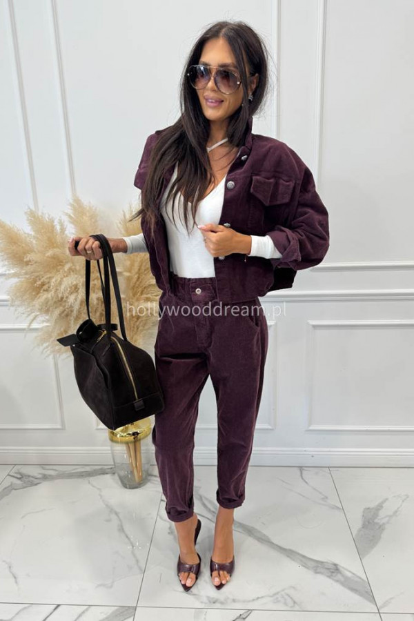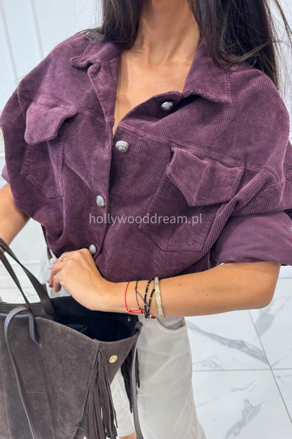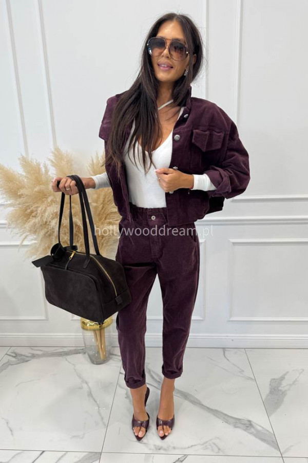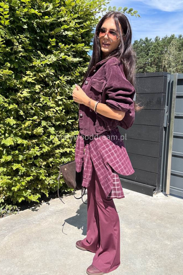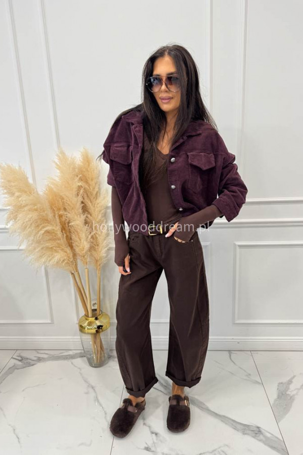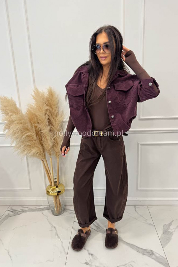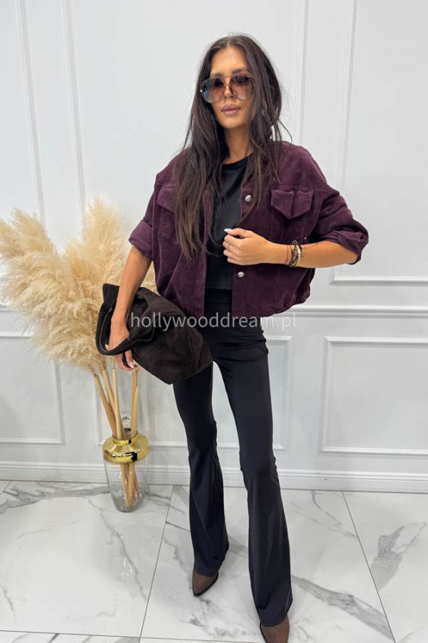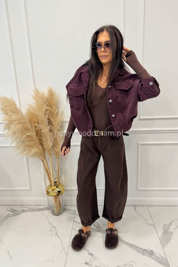 - Kurtka sztruksowa bawełniana na guziki bordowa MARLENA