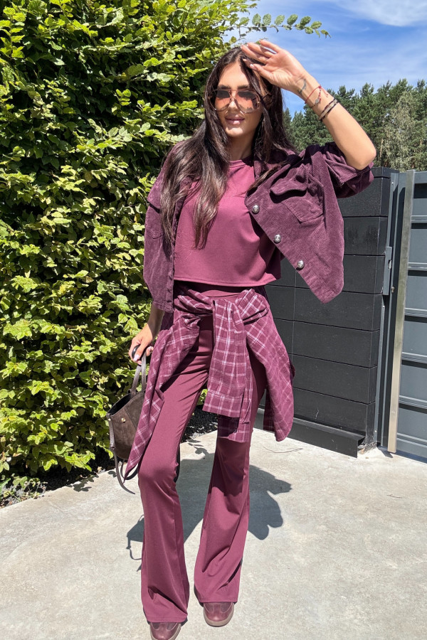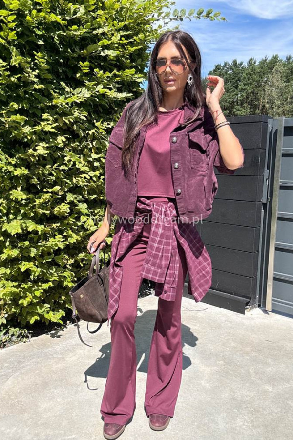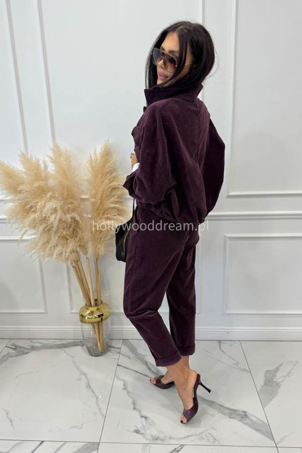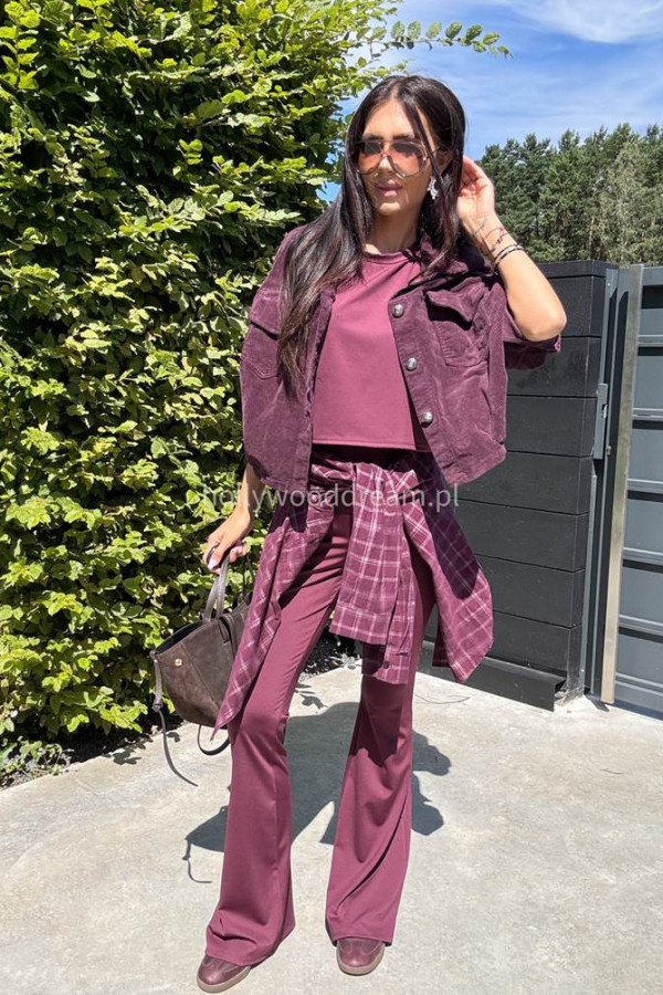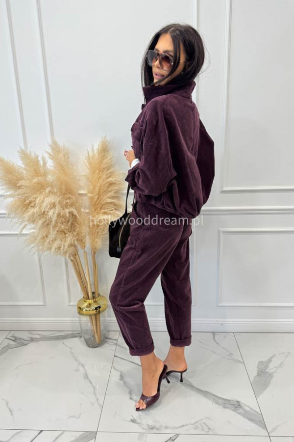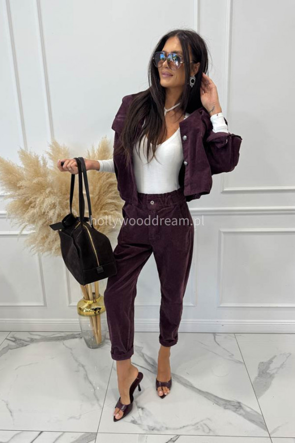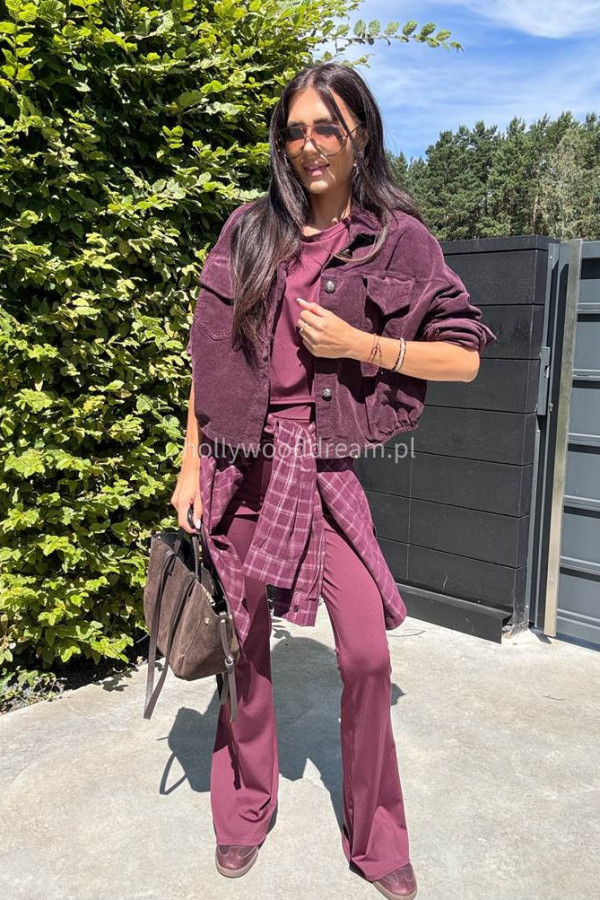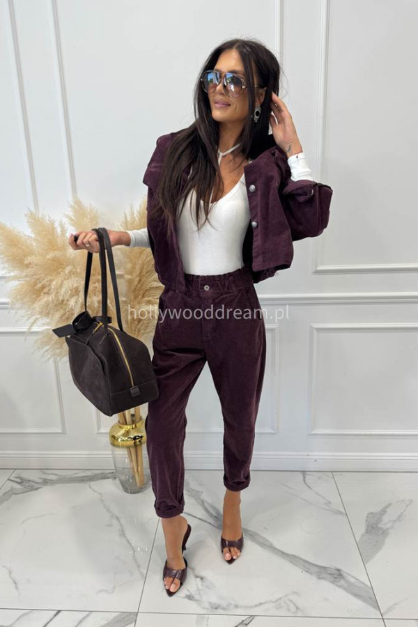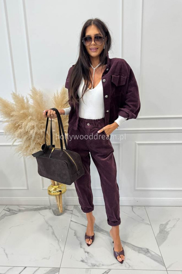 - Kurtka sztruksowa bawełniana na guziki bordowa MARLENA