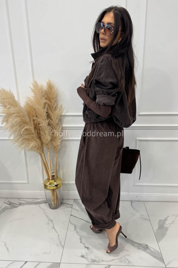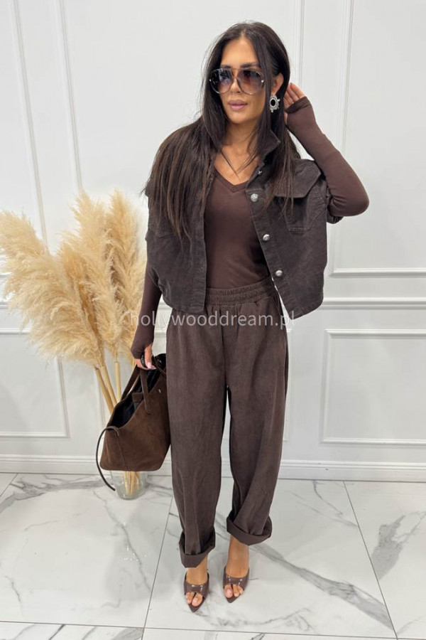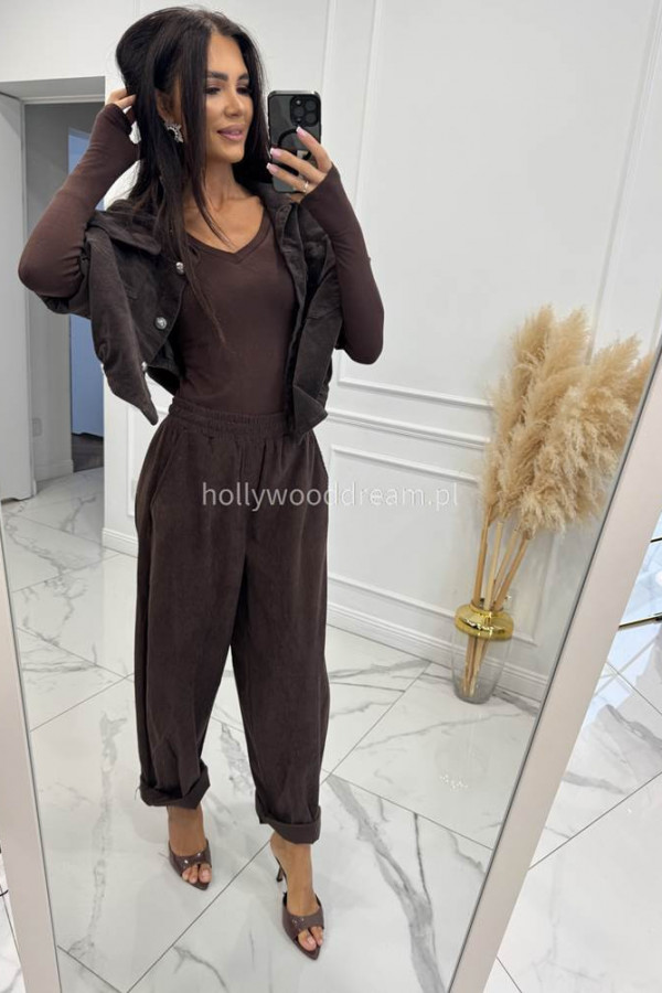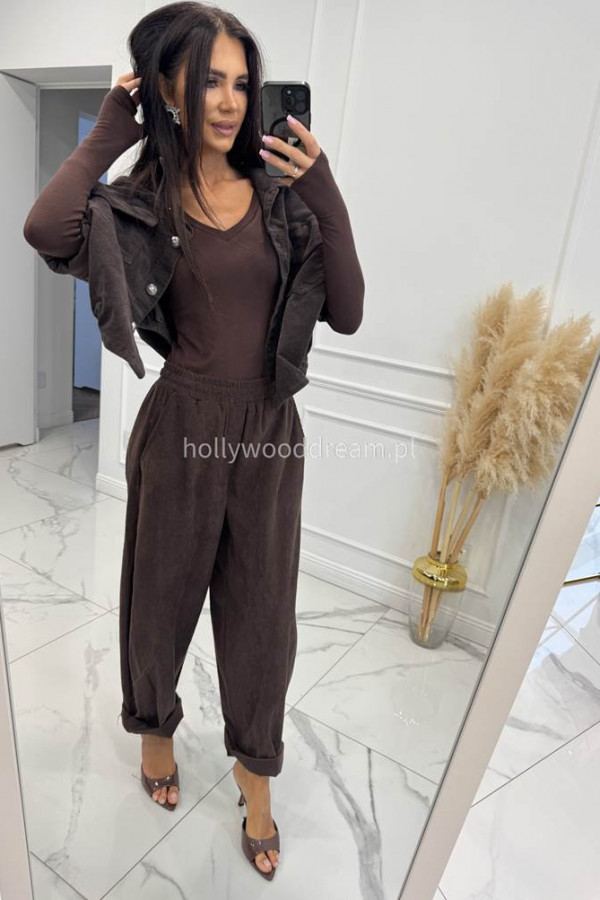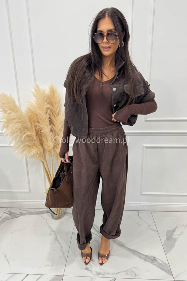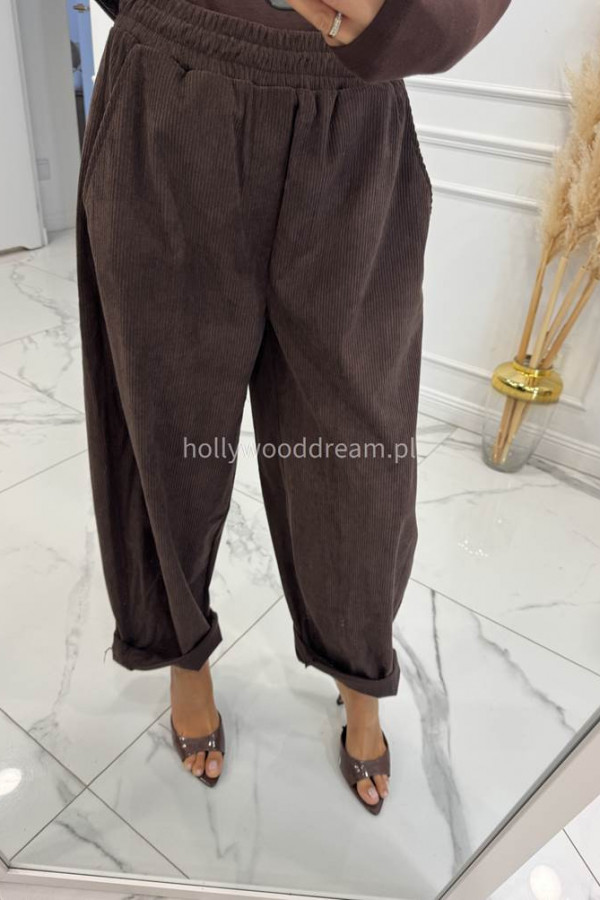 - Spodnie sztruksowe na gumce z kieszeniami czekoladowe BARTI