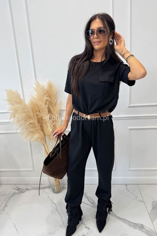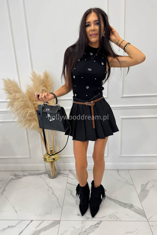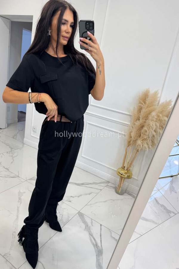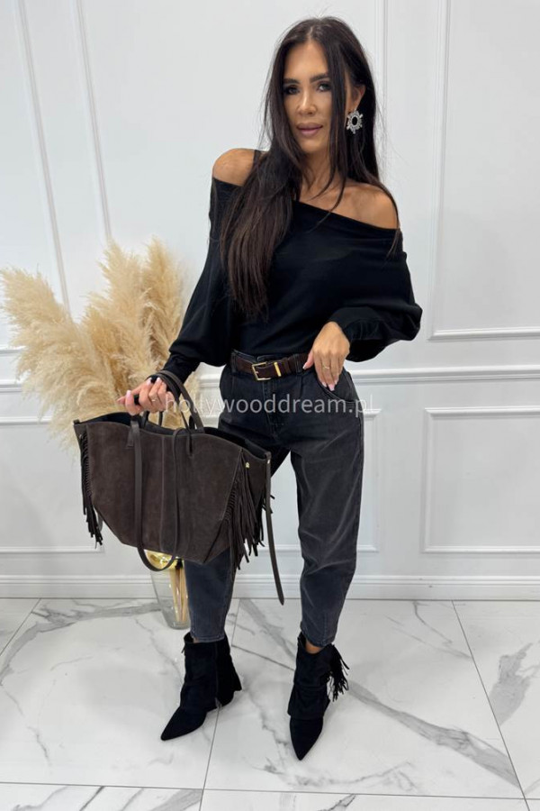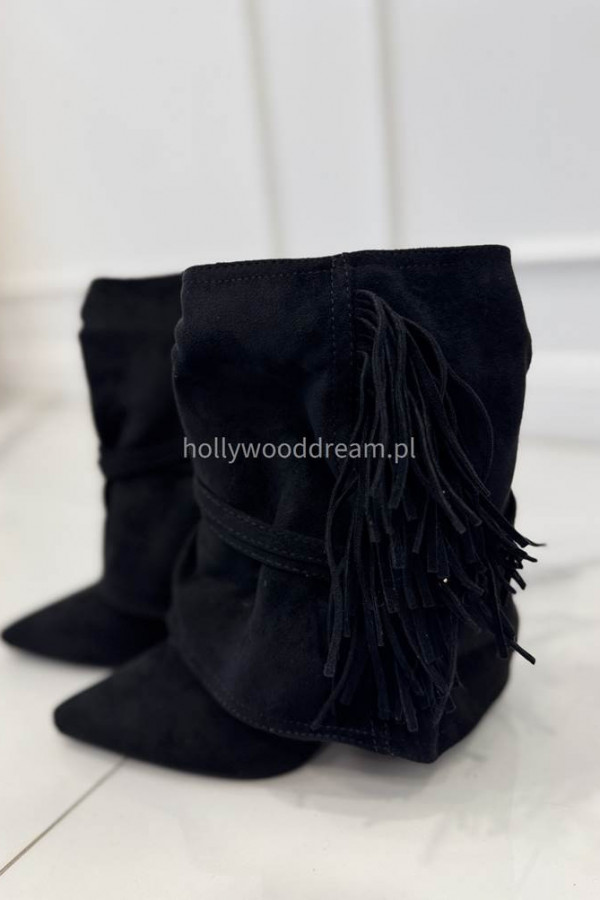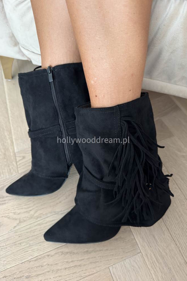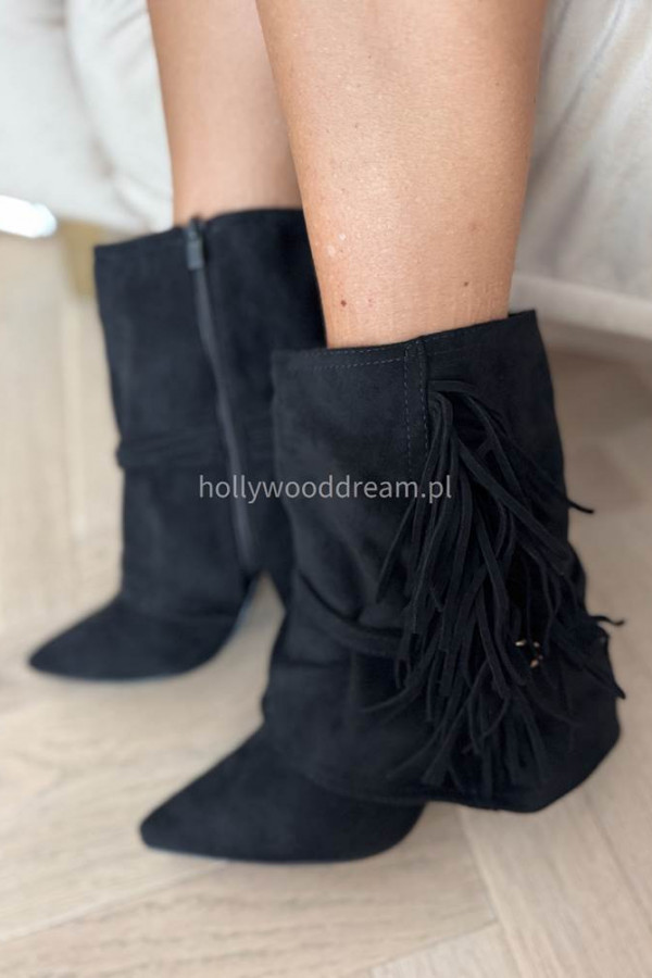 Botki krótkie zamszowe na słupku z frędzlami czarne ROZI