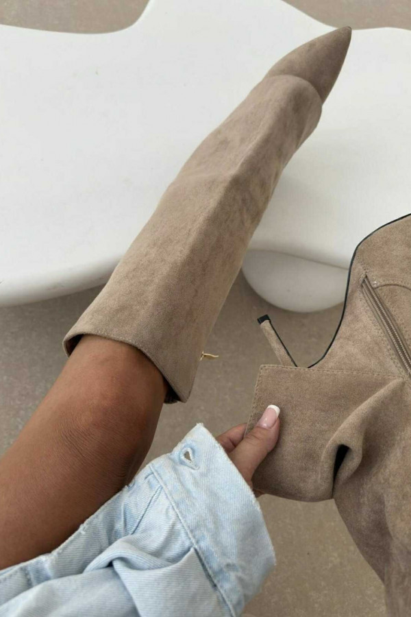 Kozaki z wywiniętą cholewką na szpilce zamszowe jasno beżowe ERNEST