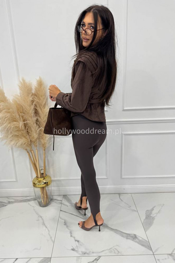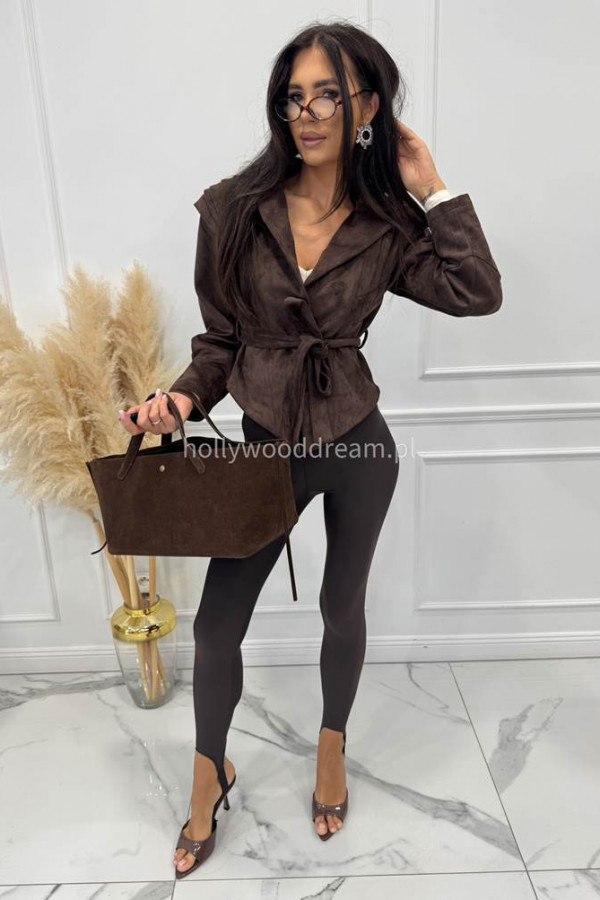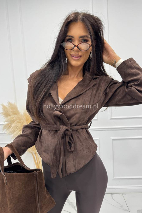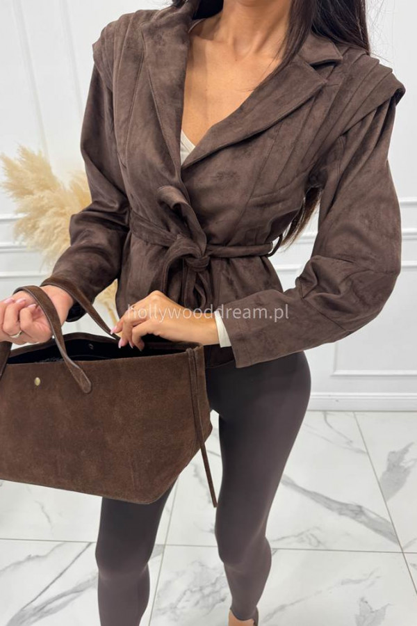 Kurtka zamszowa a'la żakiet na jeden guzik z paskiem czekoladowa JUDYTA 09