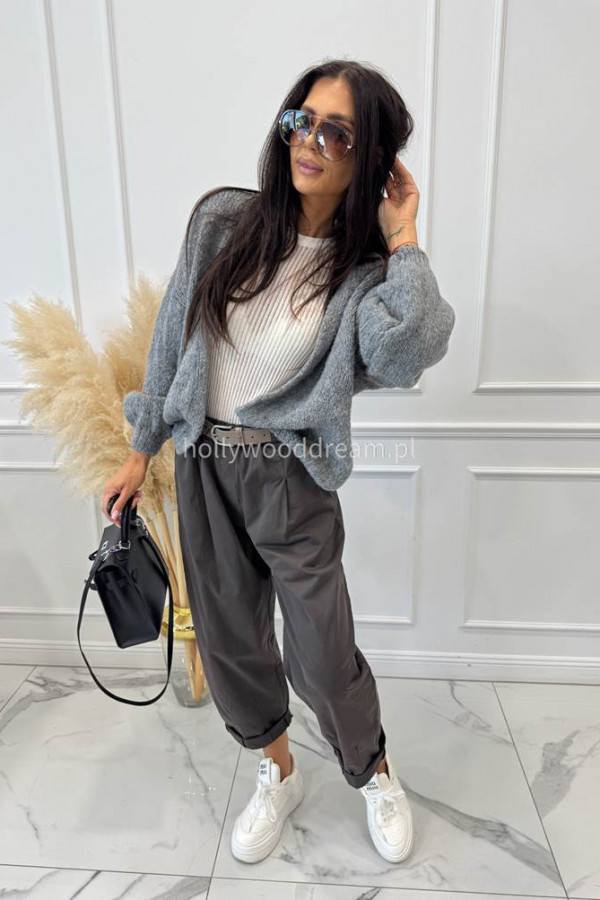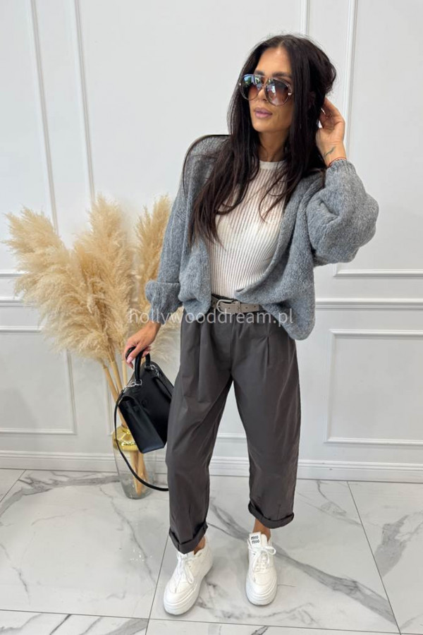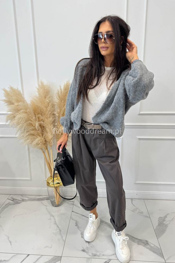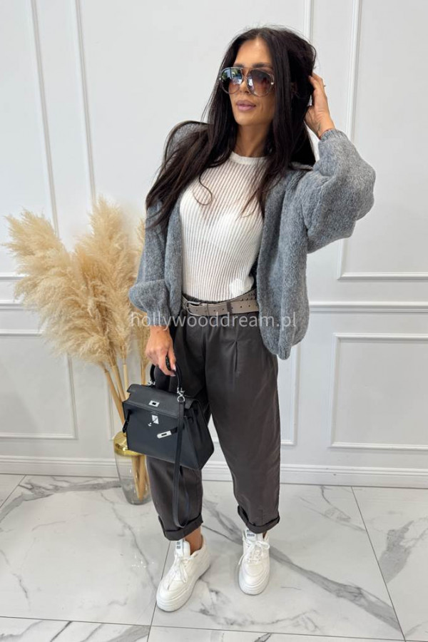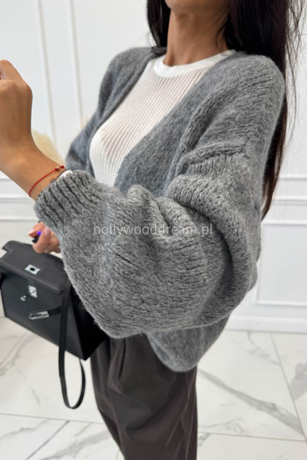 Kardigan krótki niezapinany szary FELIKS to idealne dopełnienie codziennych stylizacji. Wykonany z miękkiej, przyjemnej w dotyku dzianiny, zapewnia komfort i swobodę ruchów. Niezapinany fason dodaje lekkości i sprawia, że świetnie układa się na sylwetce. Ten model ma klasyczny, uniwersalny krój o długości do pasa, który doskonale sprawdzi się w zestawie z jeansami, spódnicą lub sukienką. Subtelny kolor szarości idealnie wpisuje się w neutralne, naturalne tonacje, nadając stylizacjom ciepłego charakteru.