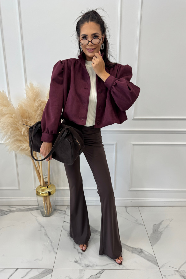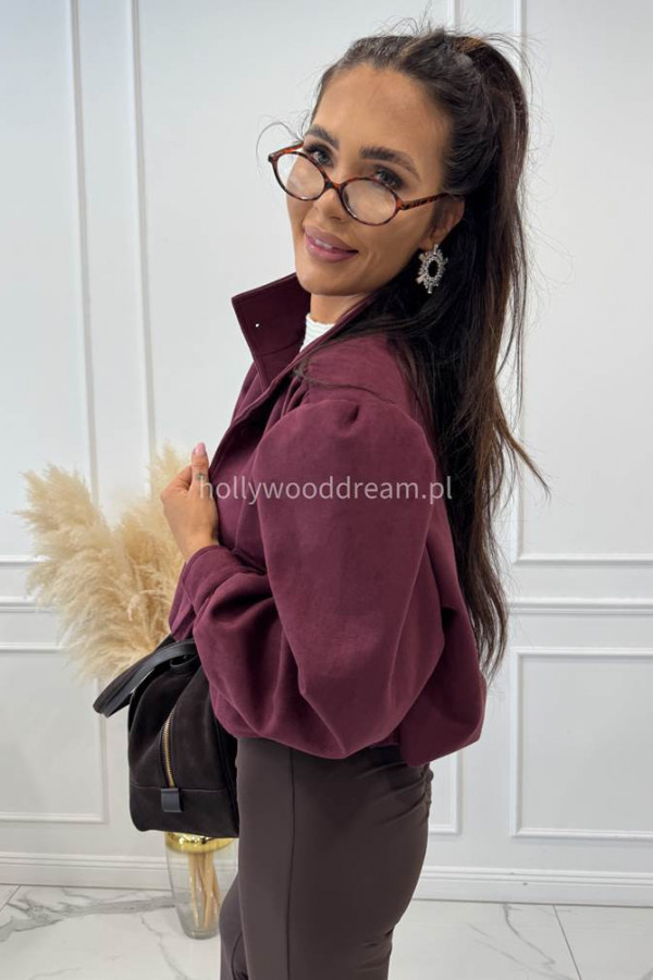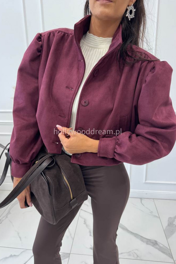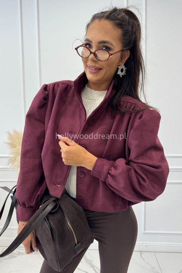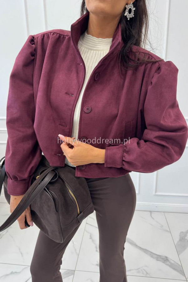 Kurtka zamszowa z guzikami i stójką bordowa MAJA 69