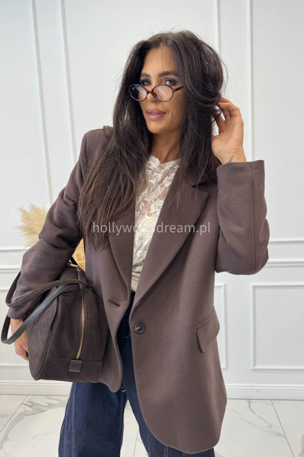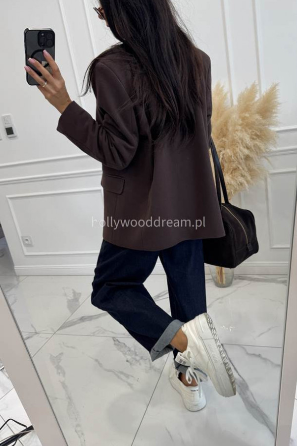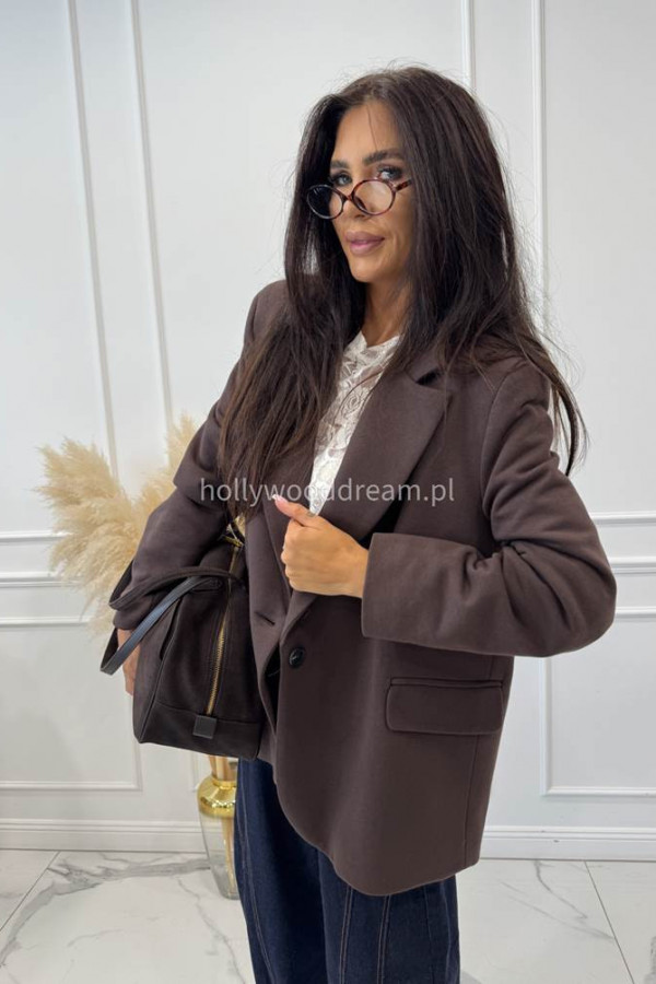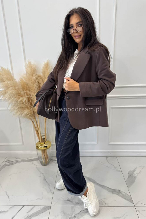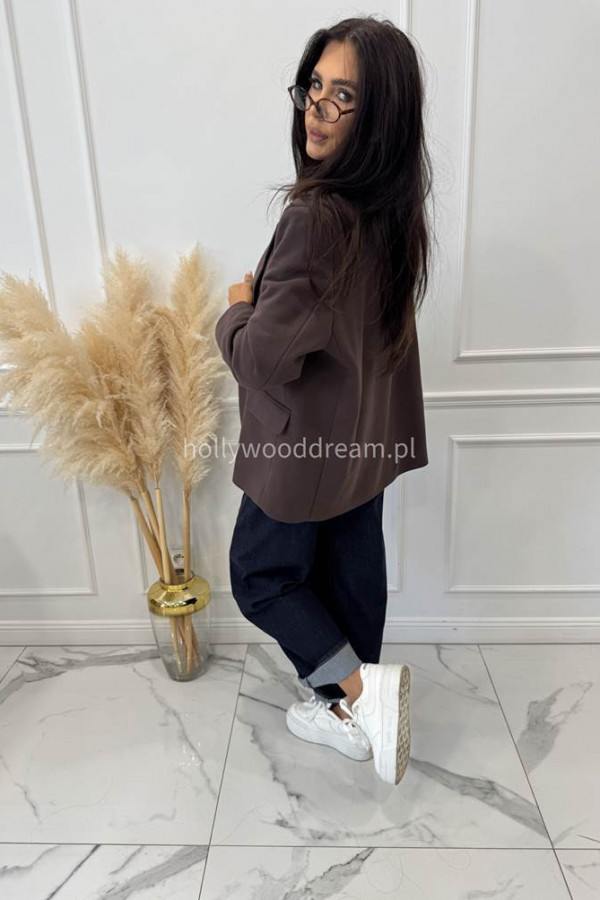 Marynarka oversize GLAM w odcieniu czekoladowym to stylowa propozycja dla kobiet ceniących nowoczesną elegancję. Luźny, lekko wydłużony krój zapewnia komfort noszenia i swobodę ruchów, a klasyczny fason sprawdzi się zarówno w stylizacjach codziennych, jak i biurowych. Wysoka jakość materiału i staranne wykończenie nadają jej ponadczasowy charakter. Doskonała baza do modnych zestawień.