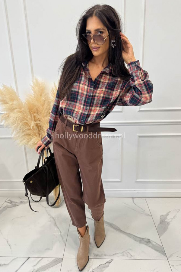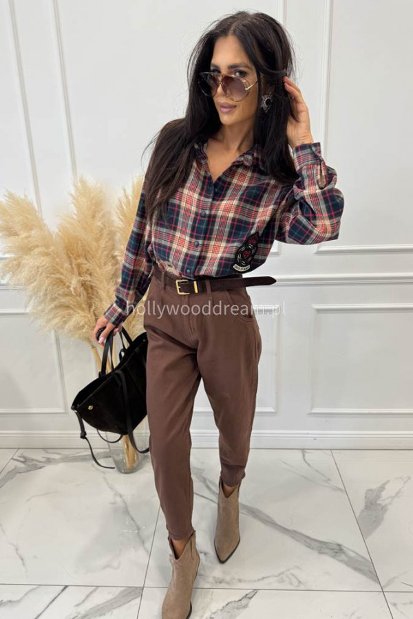 - Koszula w kratę na długi rękaw z naszywkami czerwona NORA
