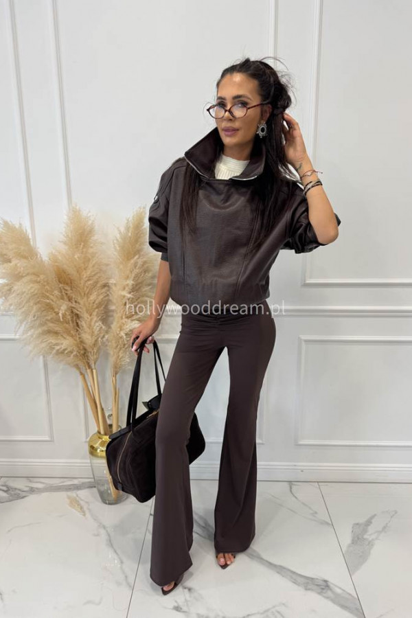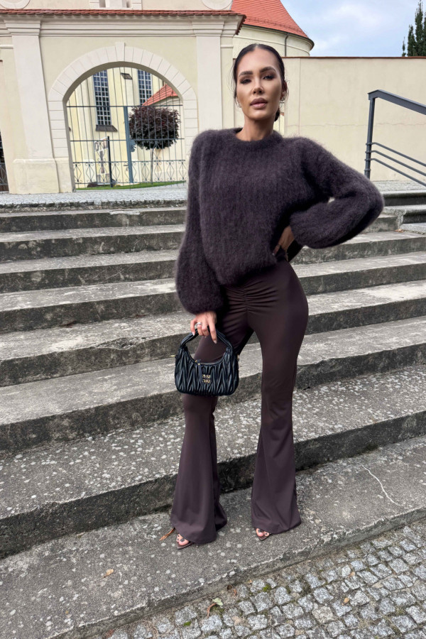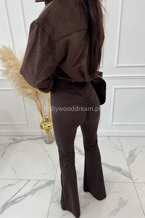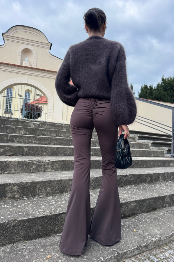 Spodnie dzwony z marszczeniem czekoladowe Astrid 171