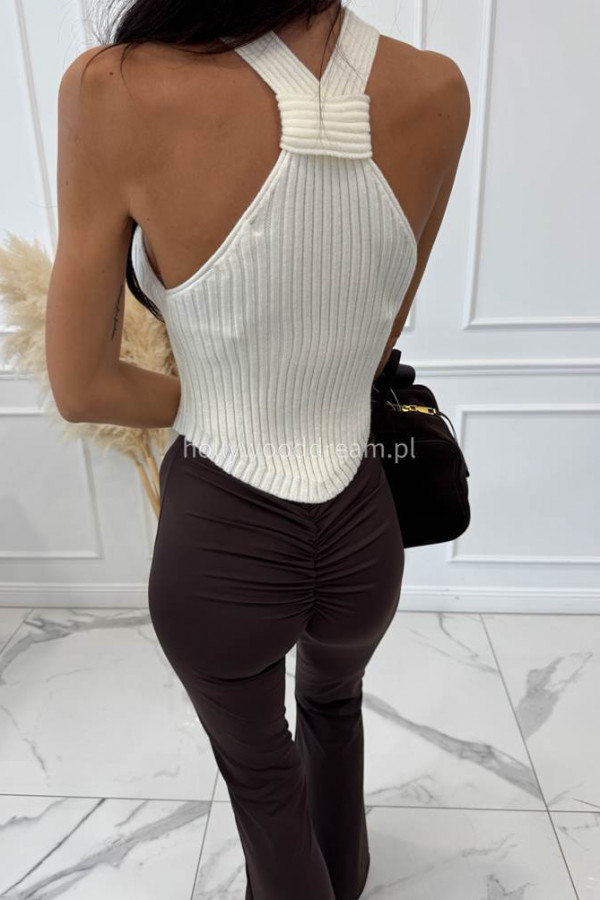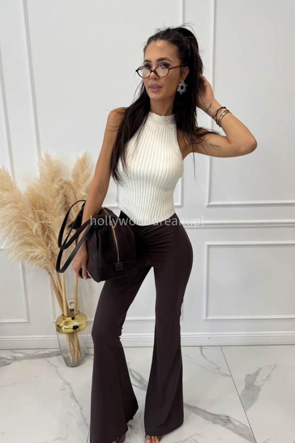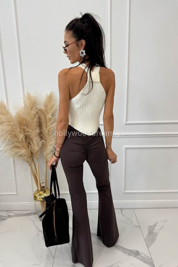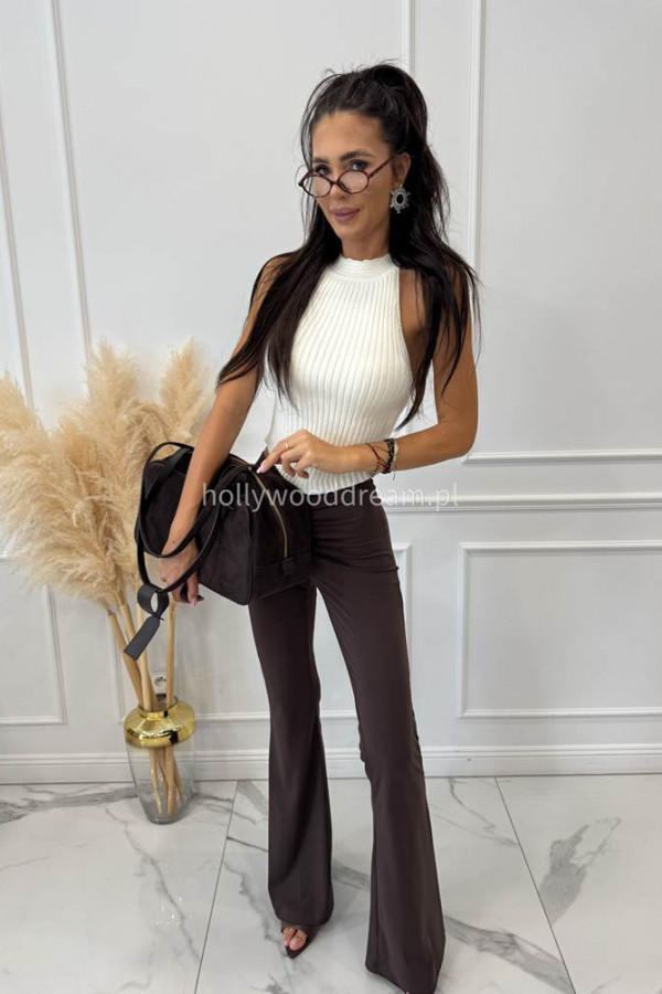 - Spodnie dzwony z marszczeniem ASTRID czekoladowe