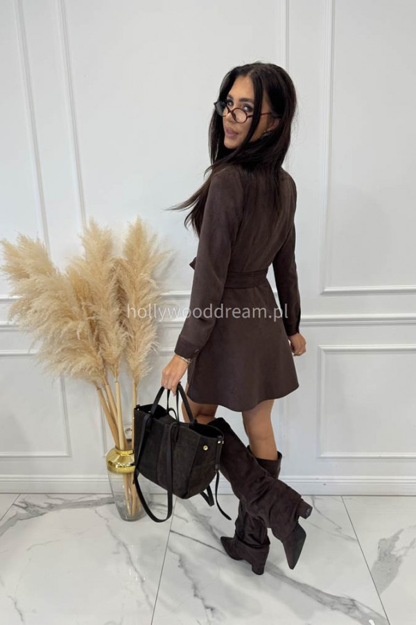 Sukienka mini zamszowa z paskiem gorzka czekolada Dalida 121