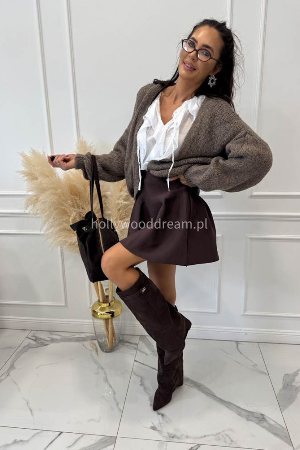 - Spódniczka mini rozkloszowana sweterkowa czekoladowa MARLA