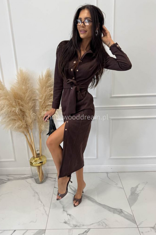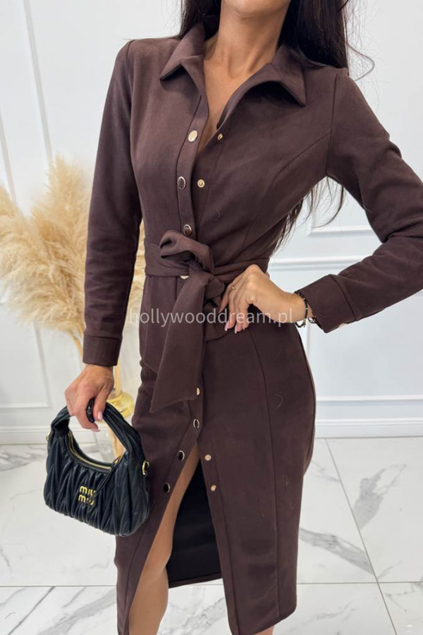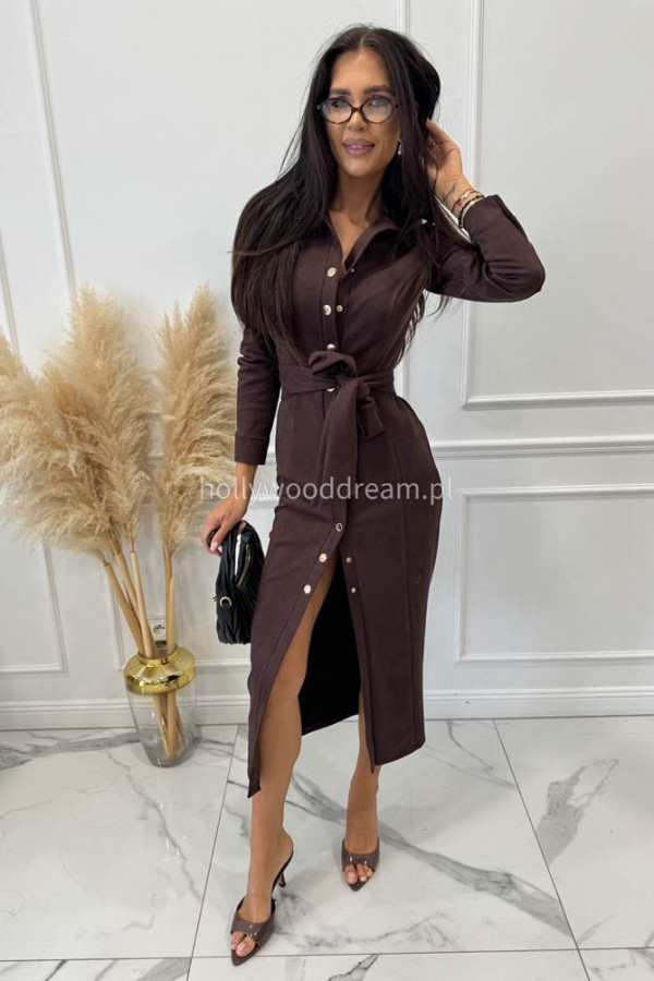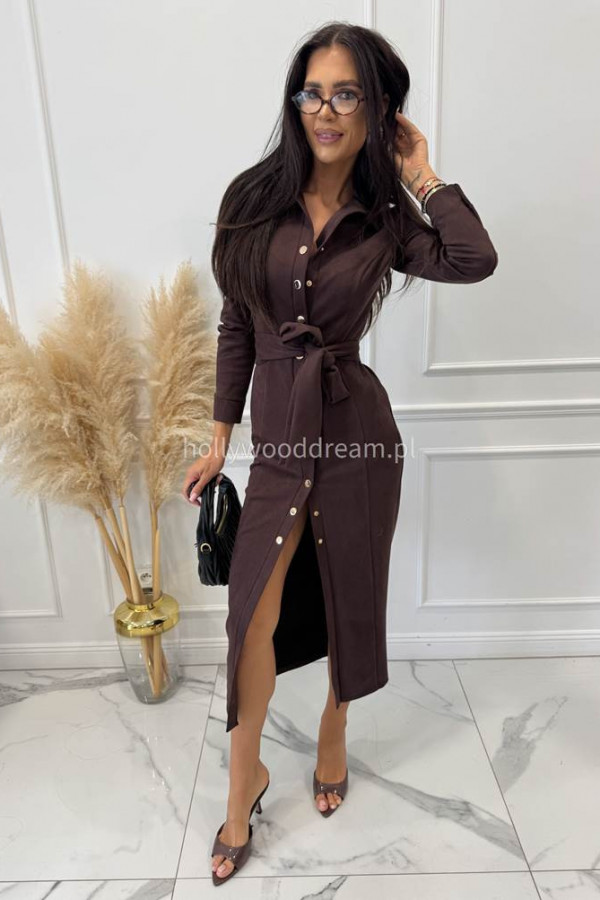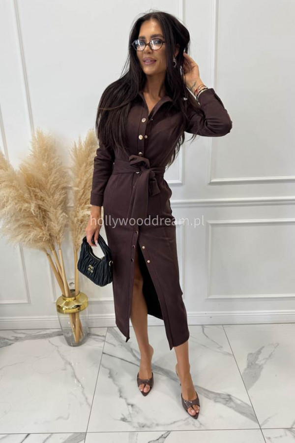 Sukienka zamszowa midi zapinana na napy czekoladowa ESME 121