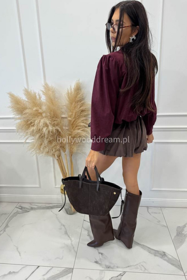 Bordowa bomberka zamszowa GABI to uniwersalna propozycja na co dzień i nie tylko. Miękki, przyjemny w dotyku materiał pięknie układa się na sylwetce, a klasyczny fason typu bomber sprawia, że kurtka pasuje do wszystkiego – od jeansów po zwiewne sukienki. Model GABI wyposażony jest w praktyczne zapięcie na napy dzięki czemu nosi się ją komfortowo i stylowo. Bordowa kurtka zamszowa GABI to ponadczasowy basic z nutą miejskiego szyku. stylizacji.