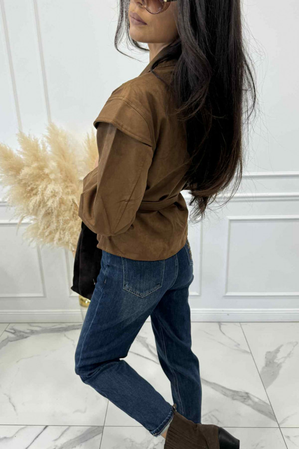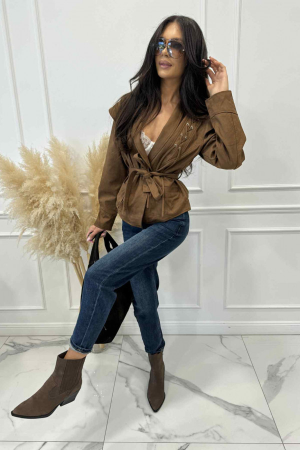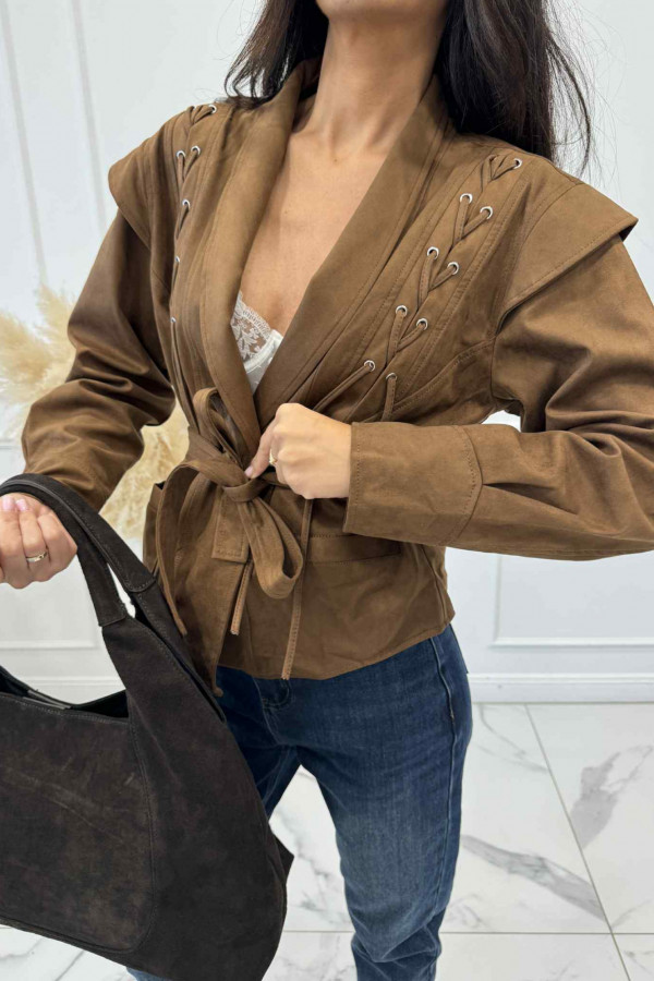 - Kurtka zamszowa zdobiona sznurowaniem i paskiem czekoladowa LILKA
