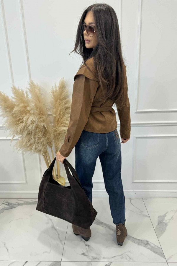 Kurtka zamszowa zdobiona sznurowaniem i paskiem czekoladowa LILKA 09