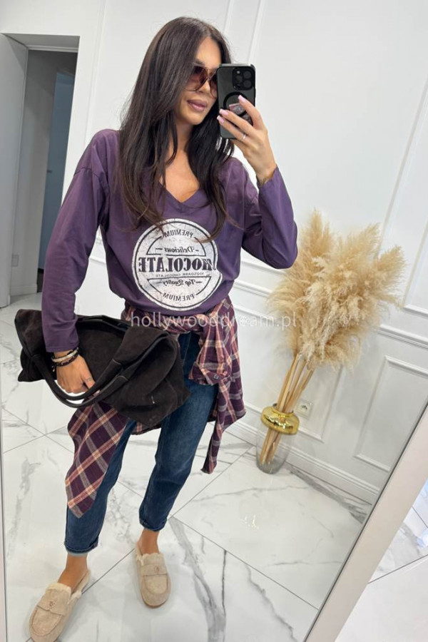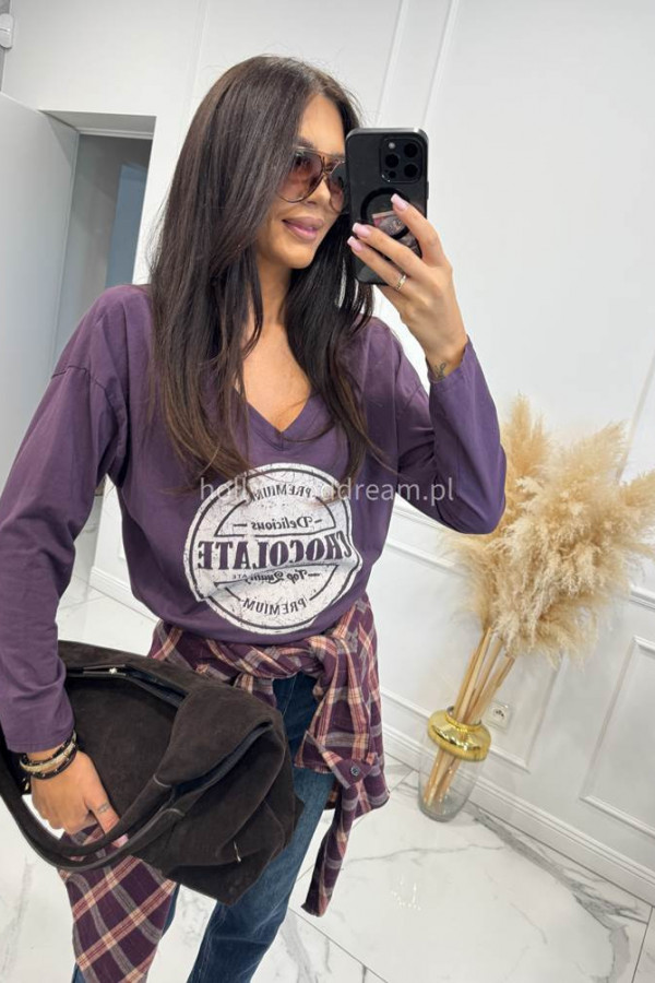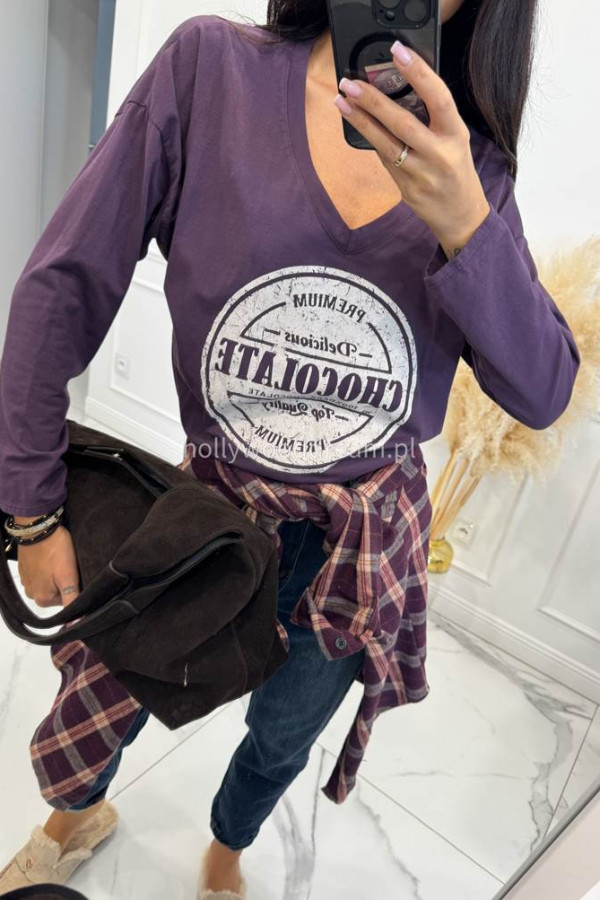 Bluzka bawełniana z okrągłym nadrukiem fioletowa CHOCOLATE 06