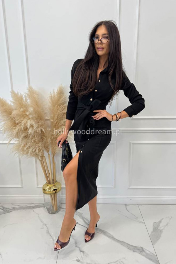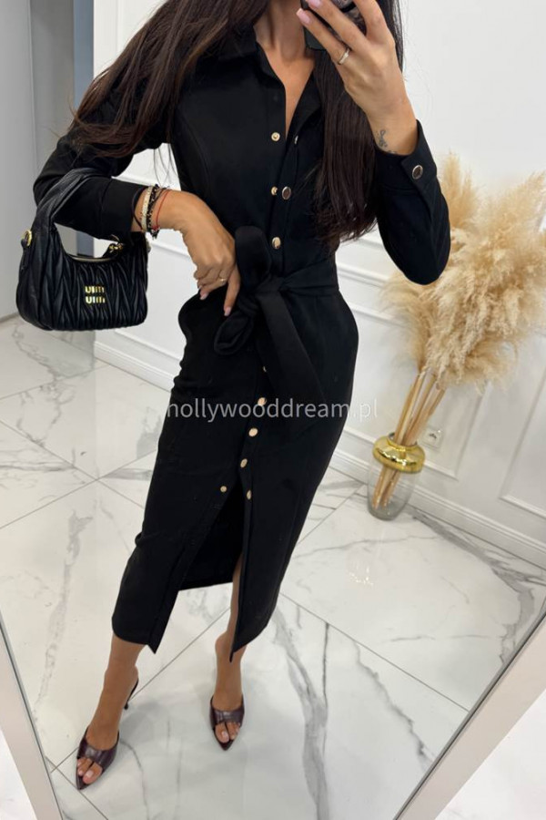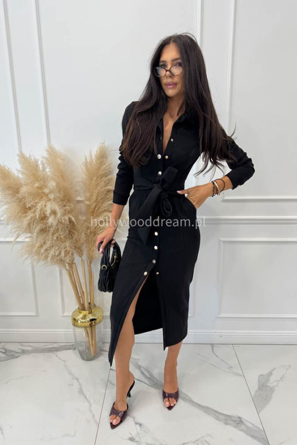 Sukienka zamszowa midi zapinana na napy czarna ESME 121