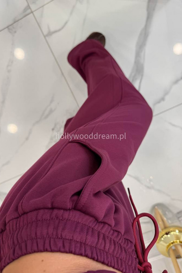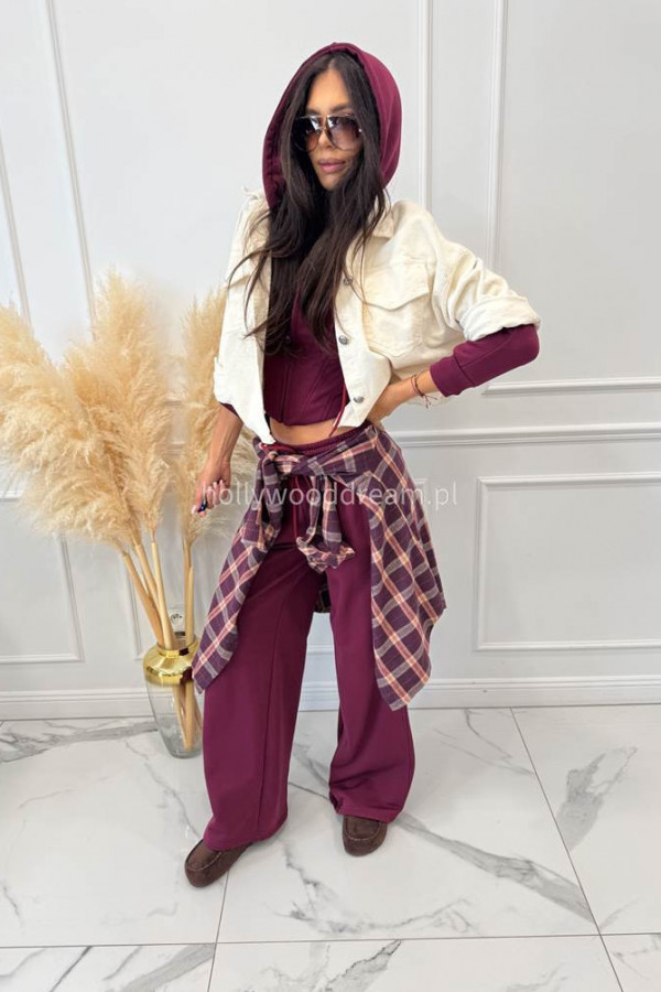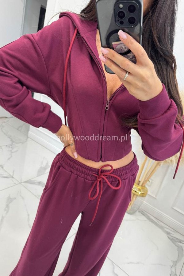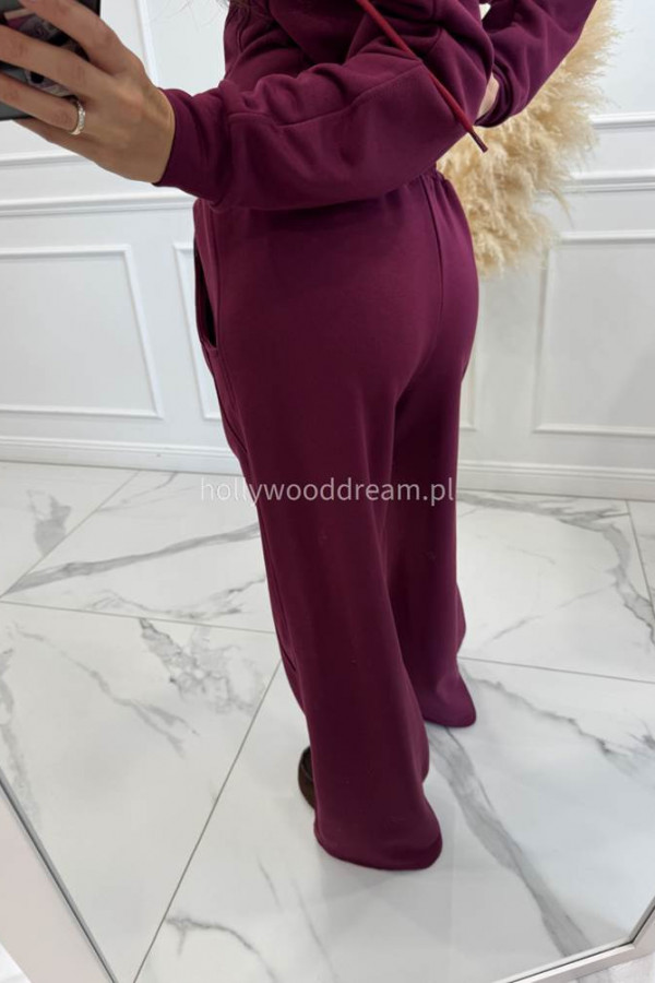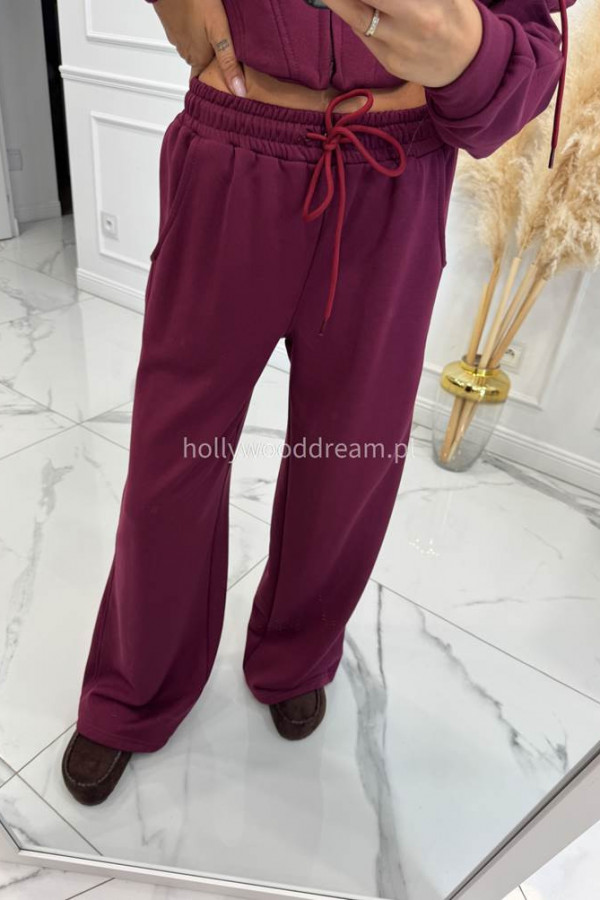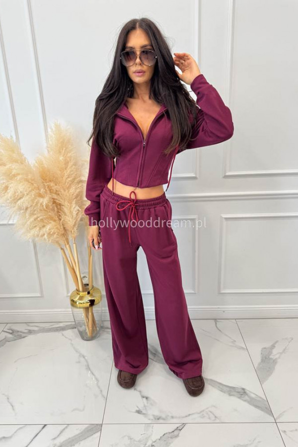 Komplet dresowy bluza rozpinana z kapturem+spodnie dzwony bordowy MAX 131