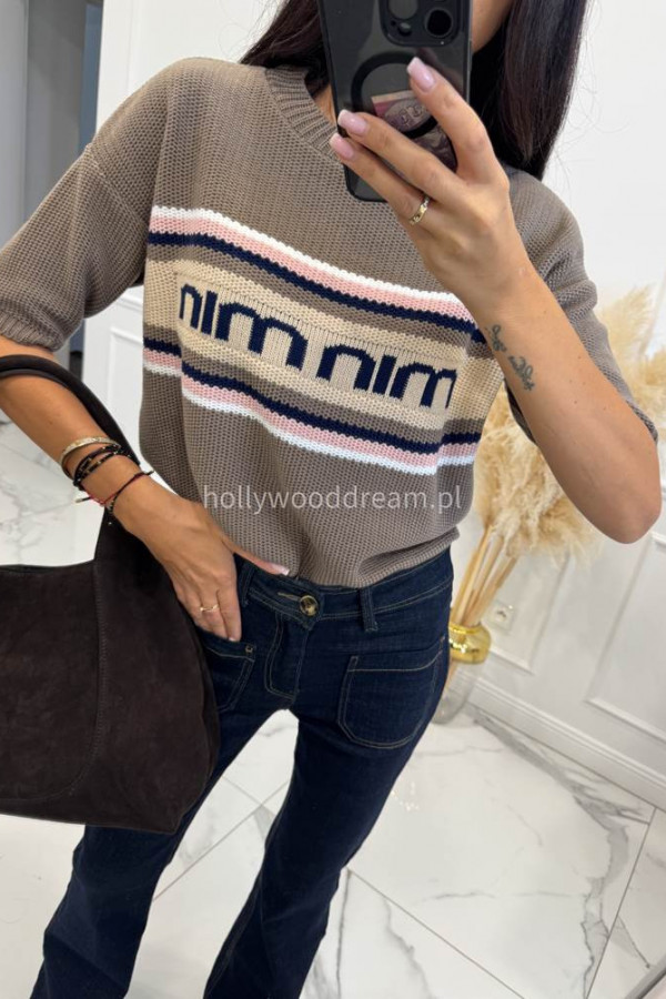 Sweter na krótki rękaw z napisem mleczna czekolada z różowym MILAN 44