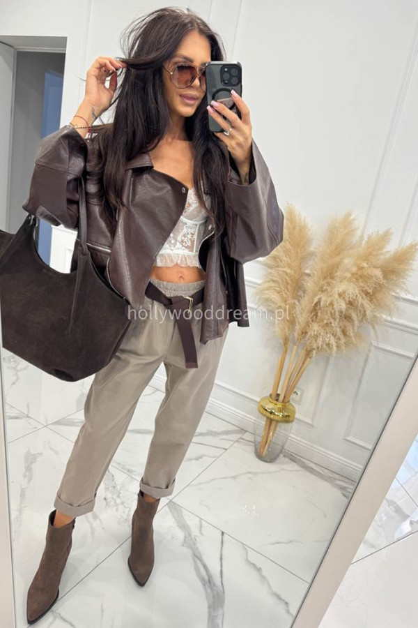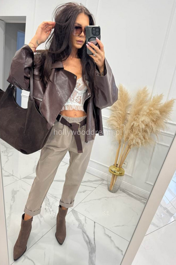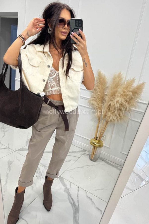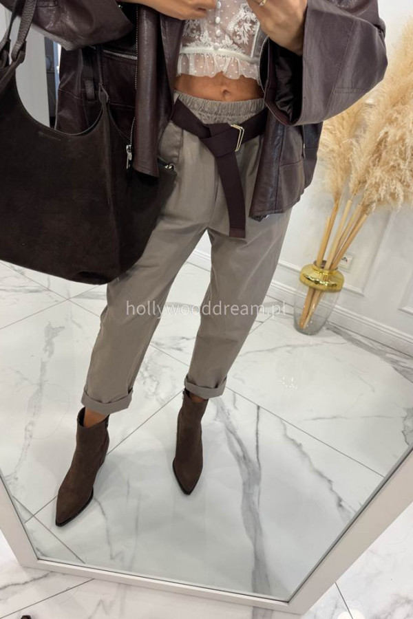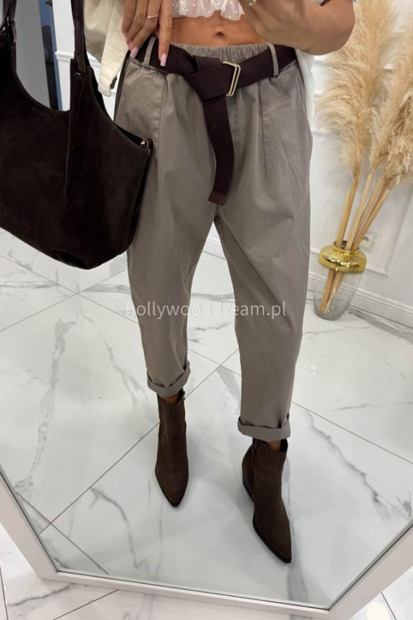 Spodnie bawełniane baloon fit z parcianym paskiem beżowe KIMI 190