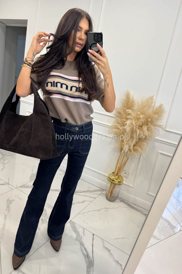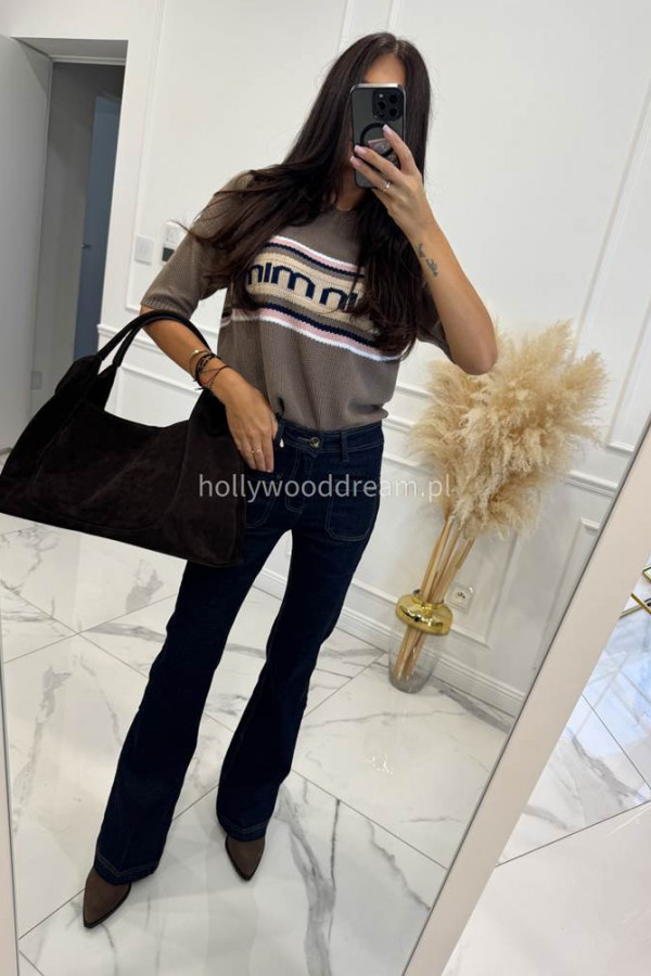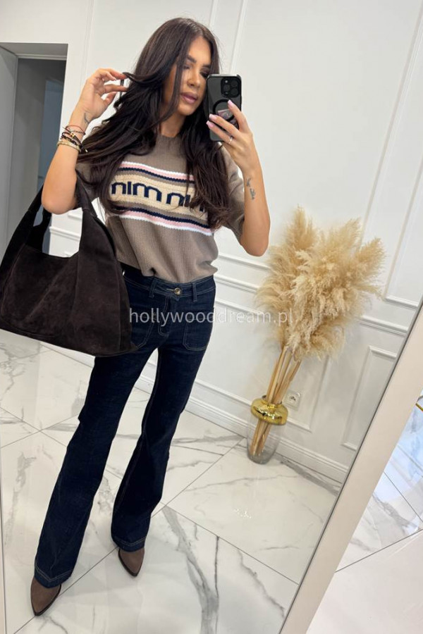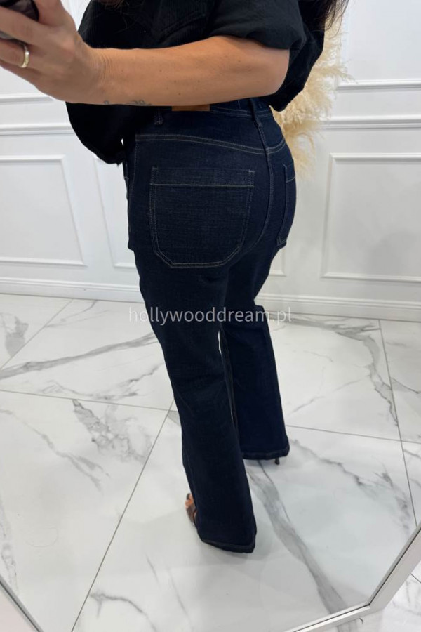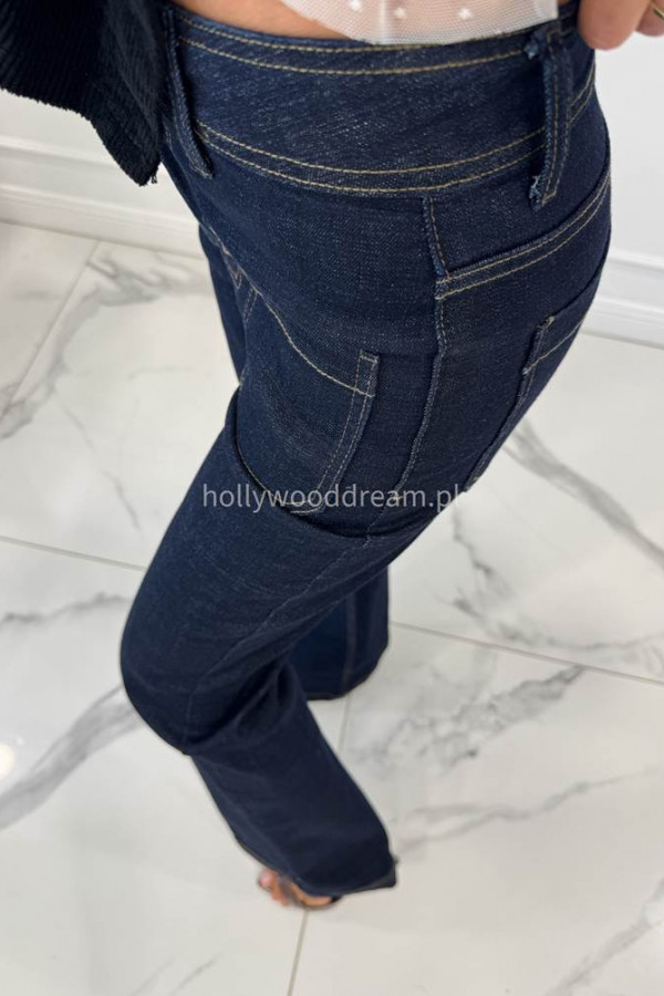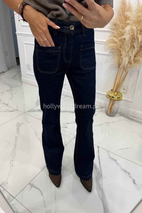Spodnie flare z kieszeniami na przodzie ciemny granat MIRON 193