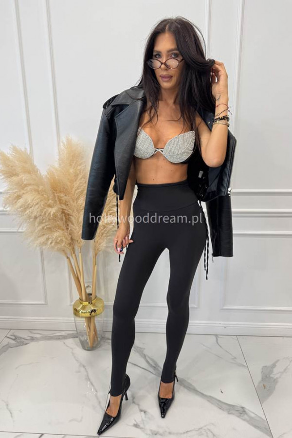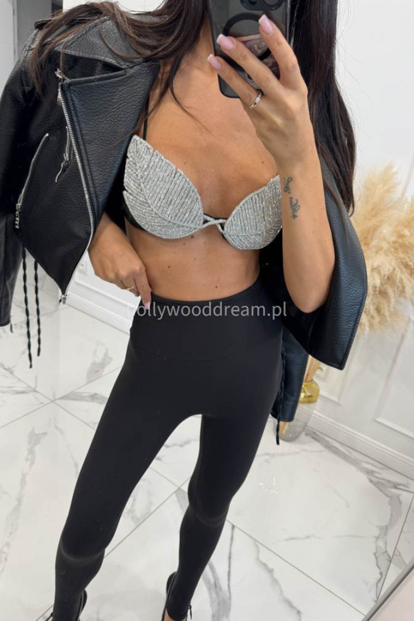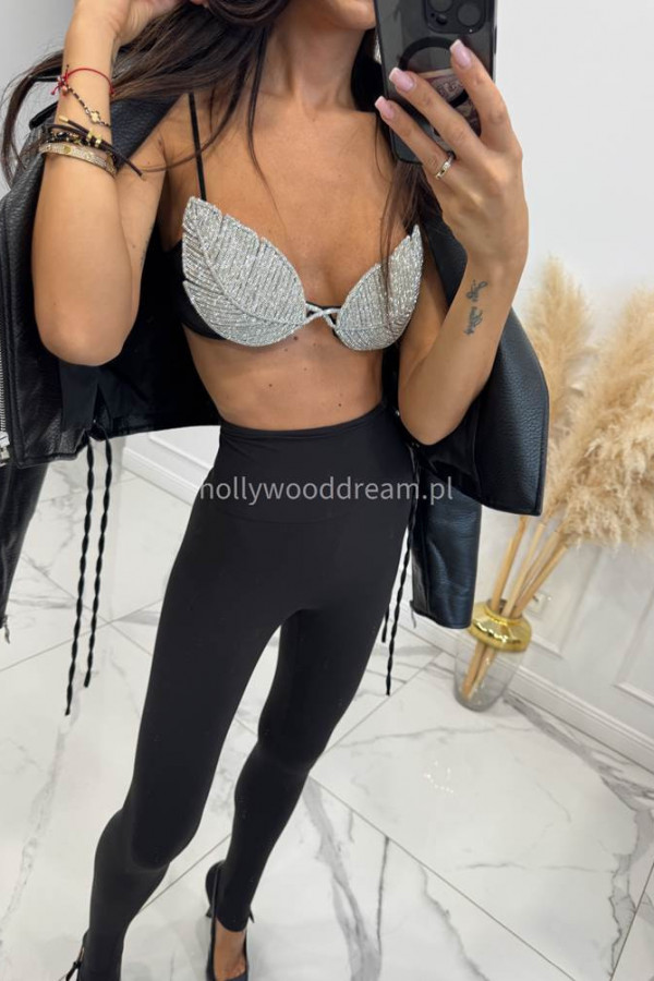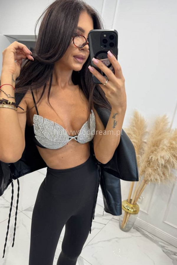 Top biustonosz cekinowy liść srebrno-czarny LORA 09
