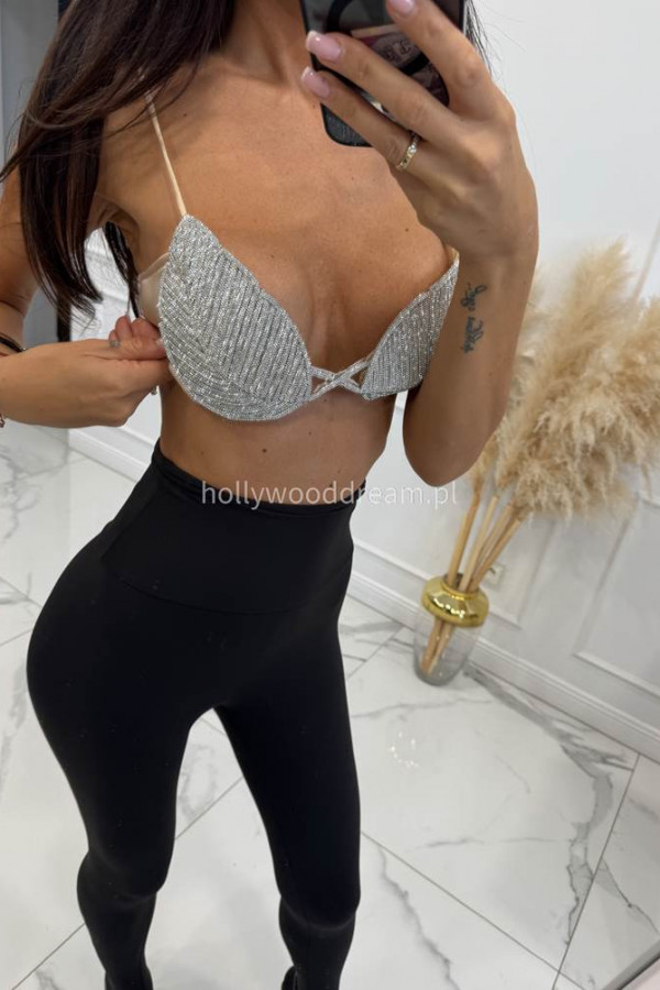 Top biustonosz cekinowy liść srebrno-beżowy LORA 09