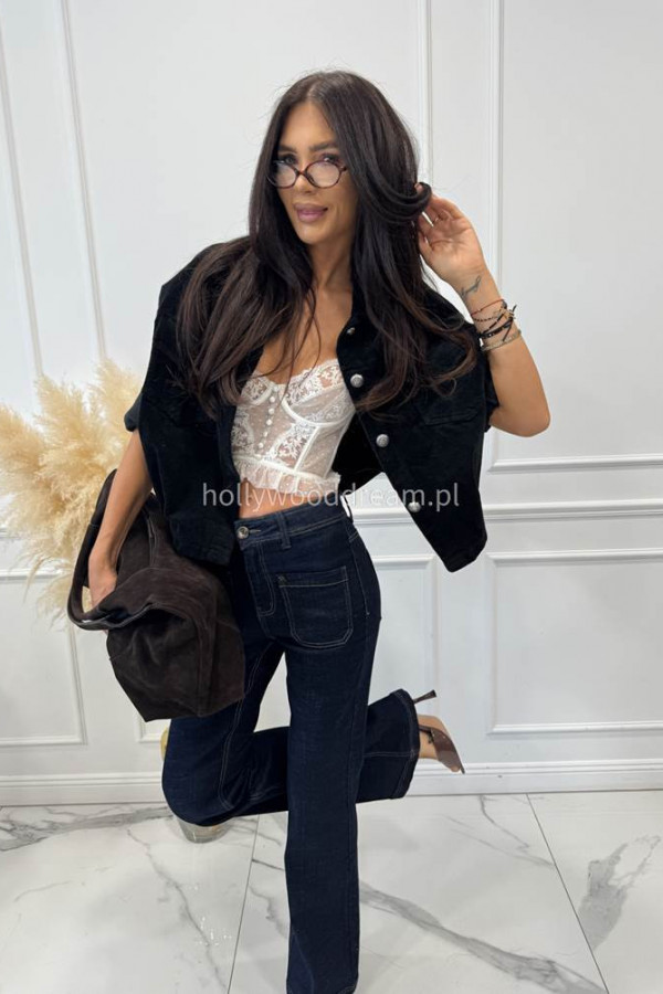 - Kurtka sztruksowa bawełniana na guziki czarna MARLENA