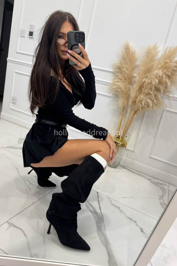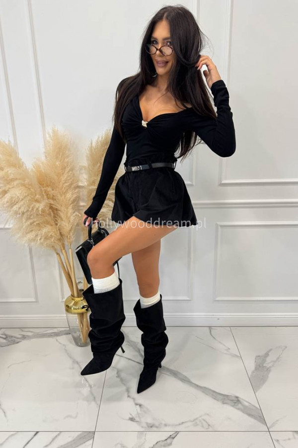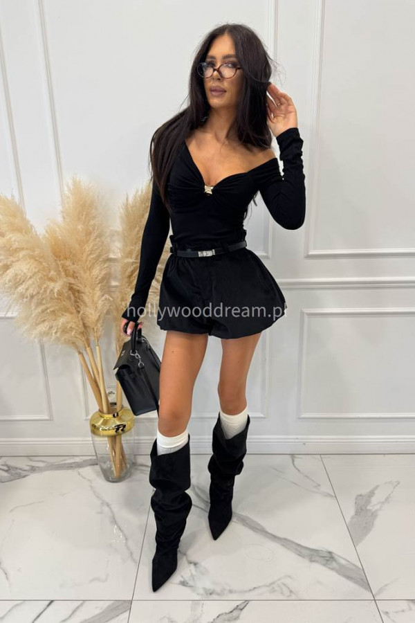 Bluzka z ozdobą na dekolcie na długi rękaw czarna MARTA 30