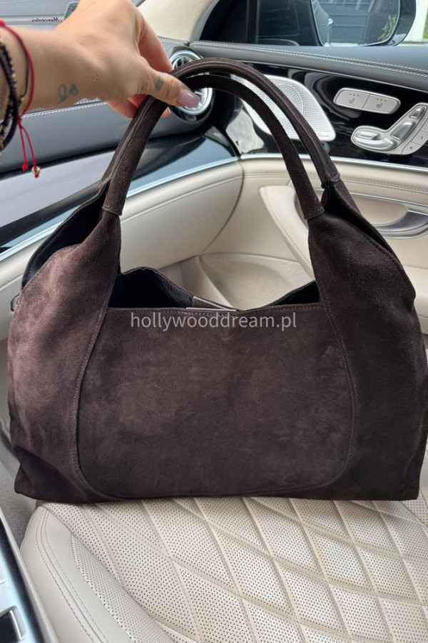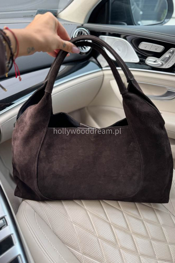 Torebka LIV to duży, pół prostokątny model wykonany z wysokiej jakości włoskiej skóry naturalnej zamszowej. Elegancki i pojemny design sprawia, że doskonale sprawdzi się zarówno na co dzień, jak i w pracy. Klasyczny kształt i szlachetne wykończenie nadają jej ponadczasowego charakteru.