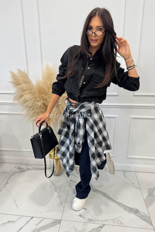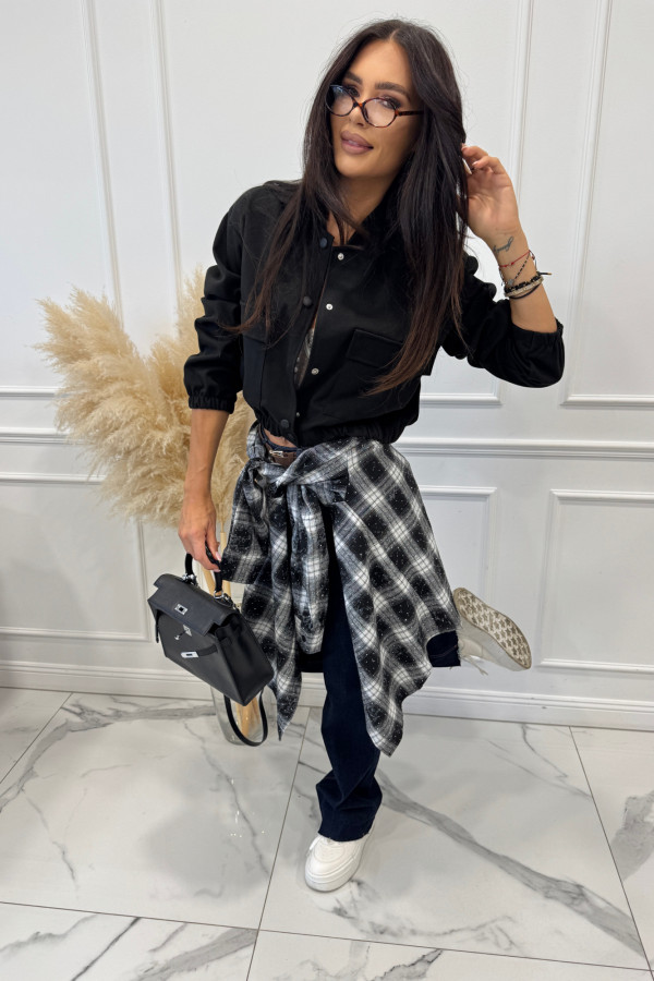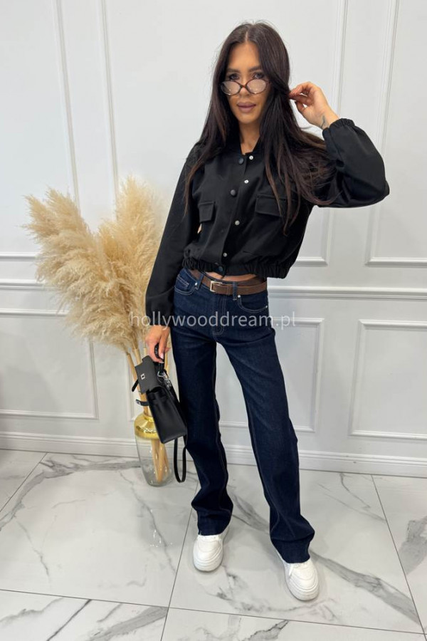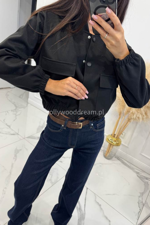 Kurtka z imitacją kieszeni zapinana na napy czarna KRISTI 94