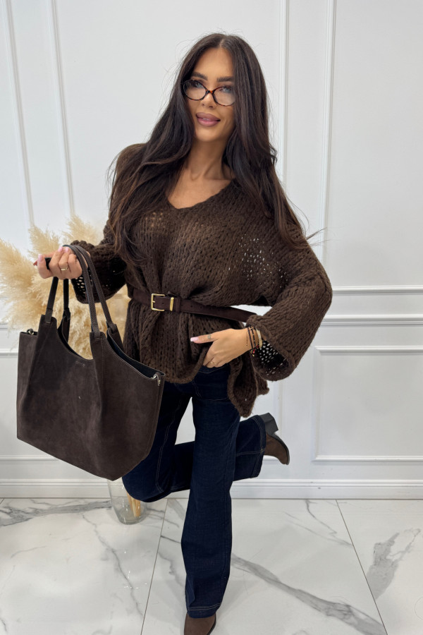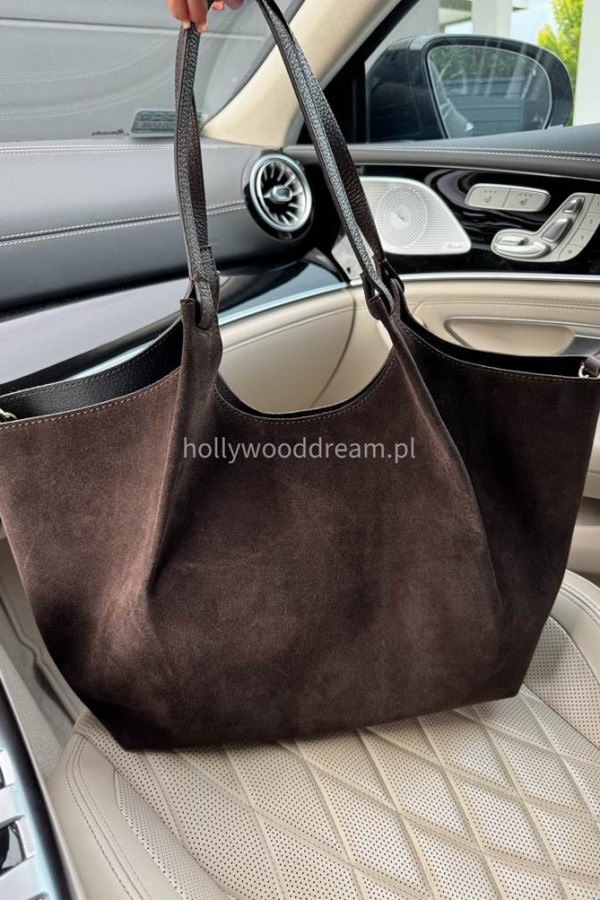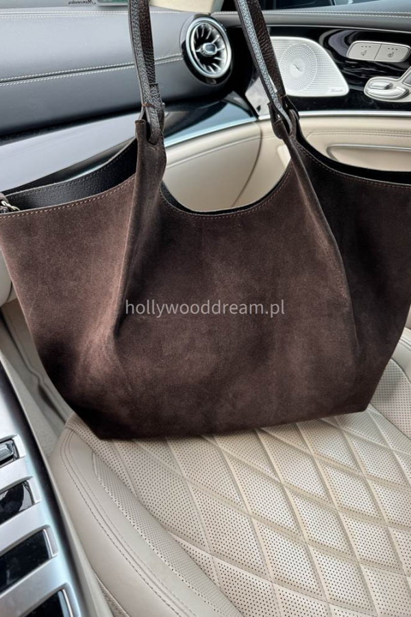 Czekoladowa torebka duża prostokąt zamszowa GLORIA