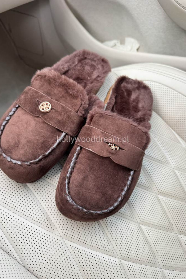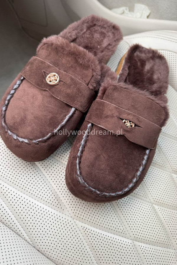 Klapki z futerkiem czekoladowe ERNEST to stylowe połączenie wygody i trendów sezonu. Miękkie, puszyste futerko nadaje im przytulnego charakteru, a ozdobna klamra dodaje nowoczesnego akcentu. Model idealnie sprawdzi się zarówno w domowym zaciszu, jak i w casualowych stylizacjach na co dzień. Lekka podeszwa i wyprofilowana wkładka gwarantują komfort noszenia przez cały dzień. Kolor czekoladowy wprowadza nutę elegancji, dzięki czemu klapki są nie tylko wygodne, ale i modne.