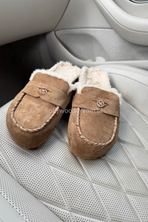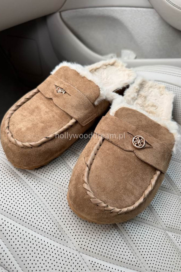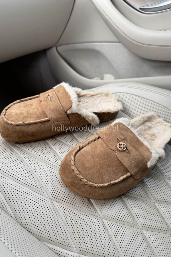 Klapki z futerkiem ciemny beż ERNEST to stylowe połączenie wygody i trendów sezonu. Miękkie, puszyste futerko nadaje im przytulnego charakteru, a ozdobna klamra dodaje nowoczesnego akcentu. Model idealnie sprawdzi się zarówno w domowym zaciszu, jak i w casualowych stylizacjach na co dzień. Lekka podeszwa i wyprofilowana wkładka gwarantują komfort noszenia przez cały dzień. Kolor czekoladowy wprowadza nutę elegancji, dzięki czemu klapki są nie tylko wygodne, ale i modne.