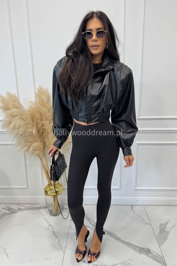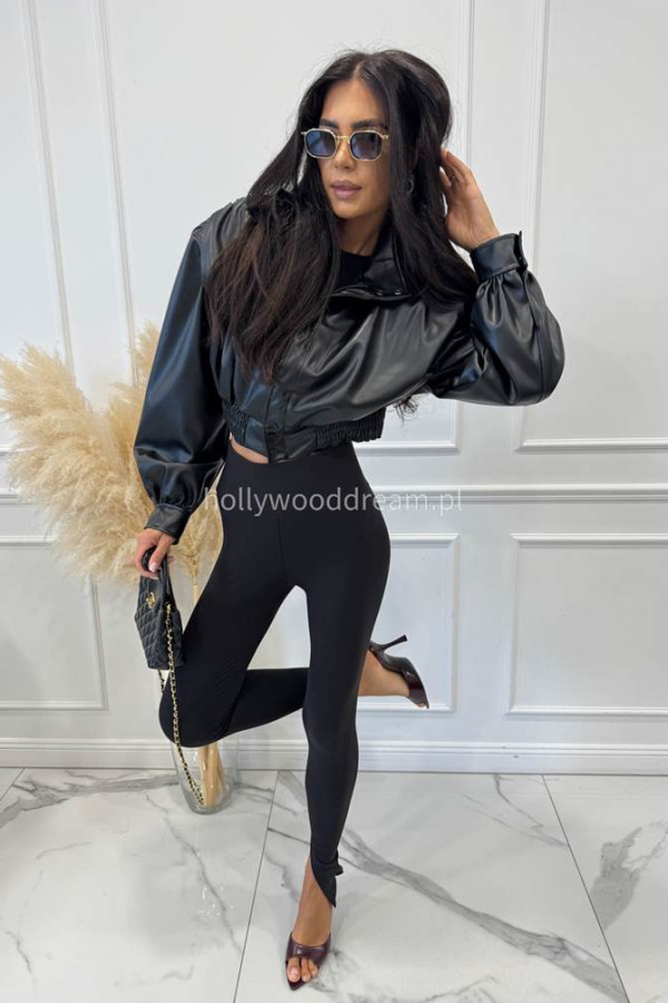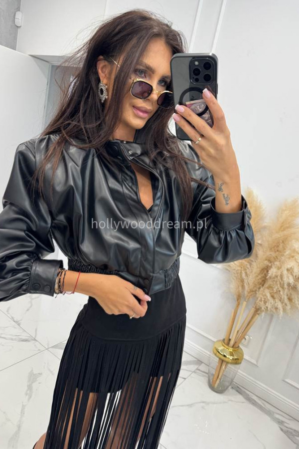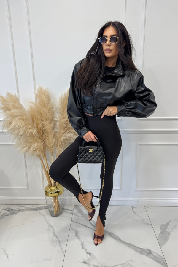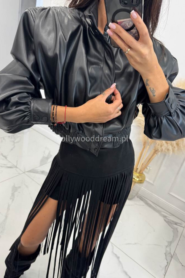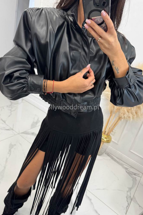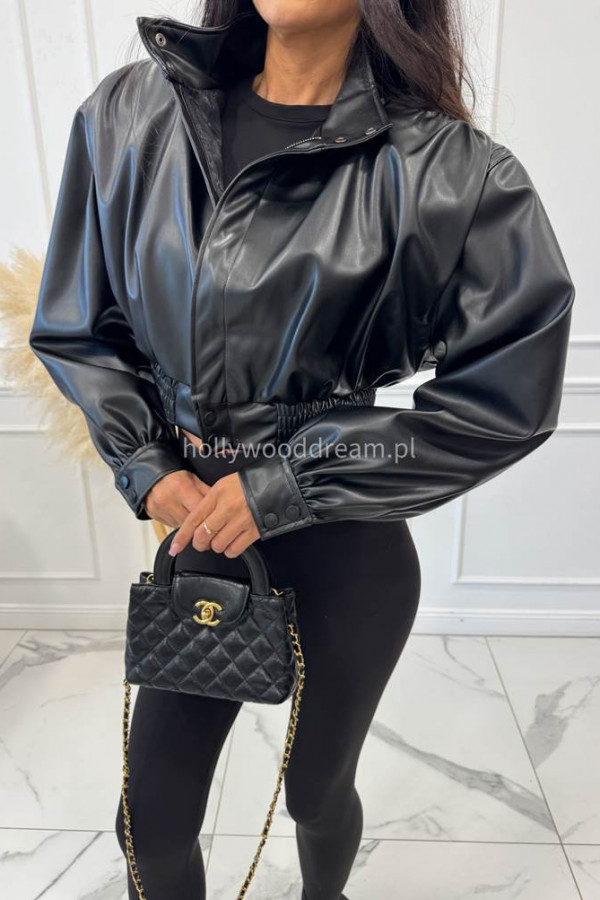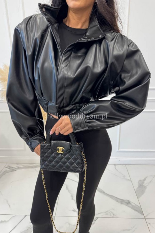 Kurtka z eko skóry z marszczeniami na ramionach czarna Fabiola 69