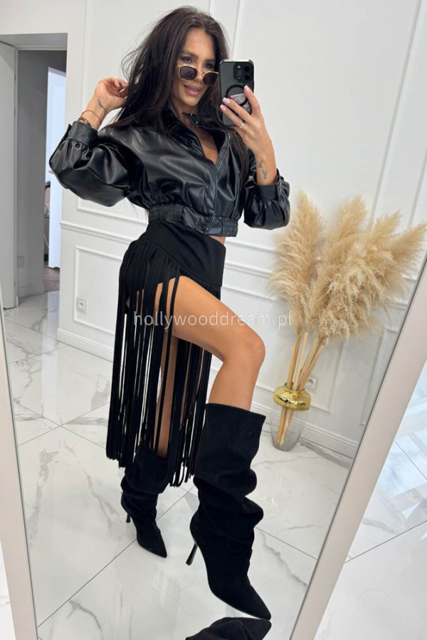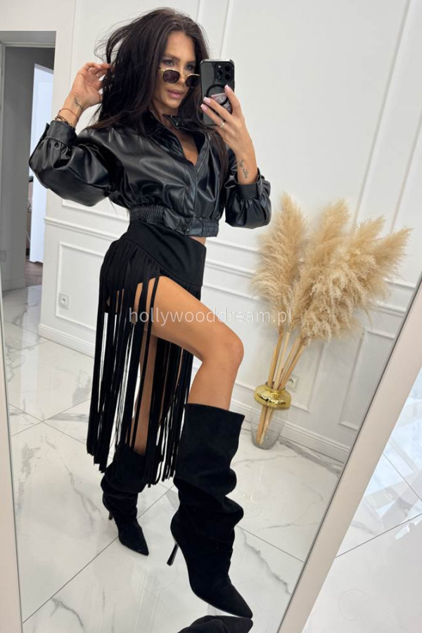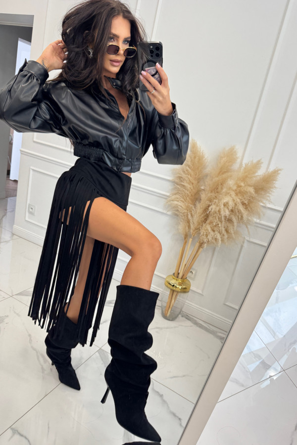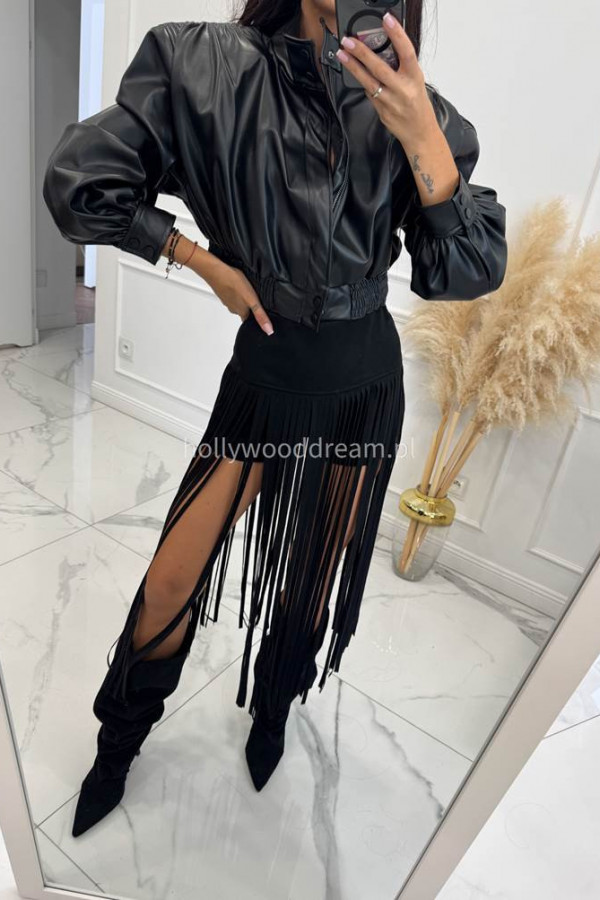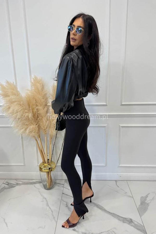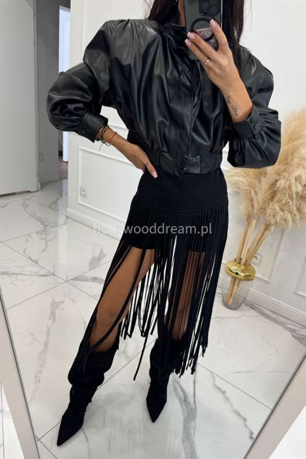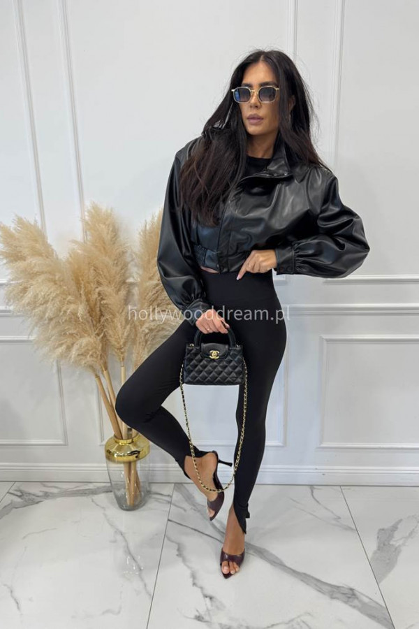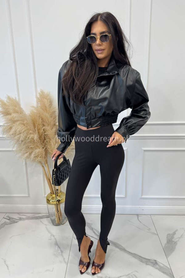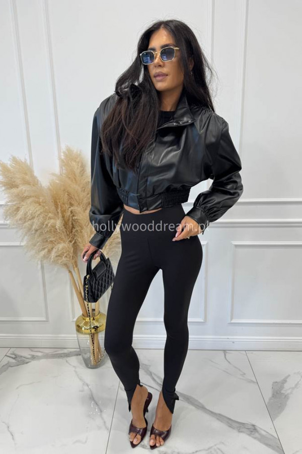 Kurtka z eko skóry z marszczeniami na ramionach czarna Fabiola 69