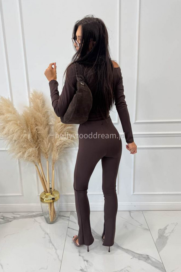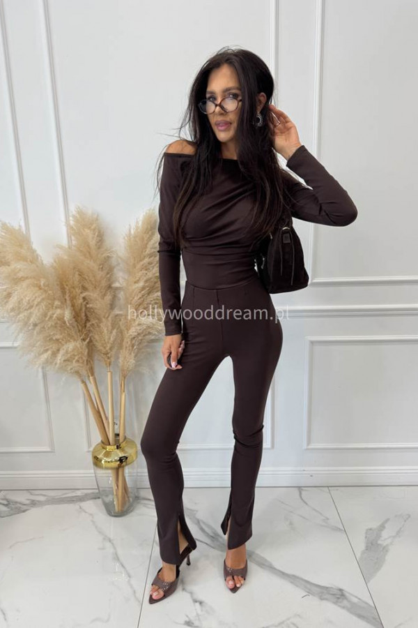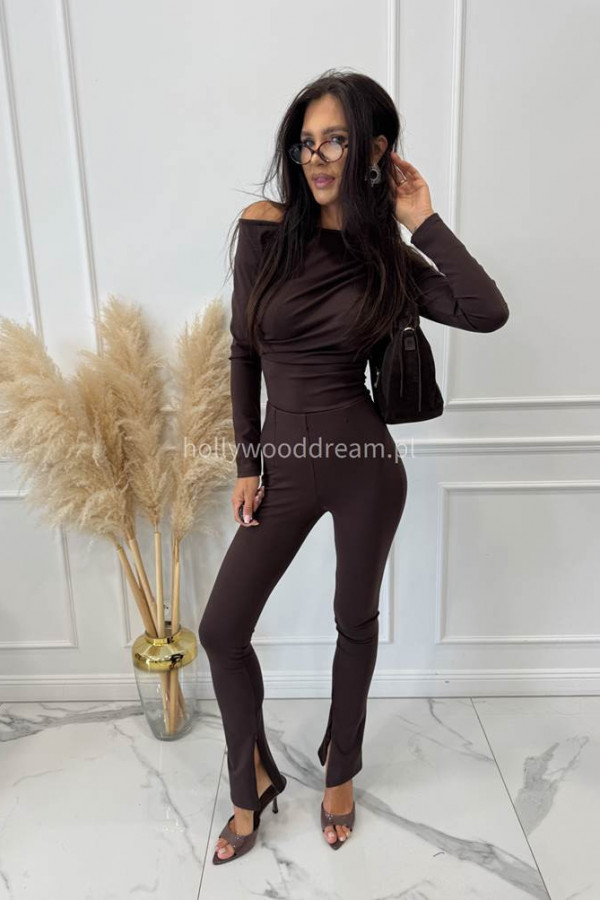 Bluzka z długim rękawem i drapowaniami po bokach czekoladowa WANIA 171
