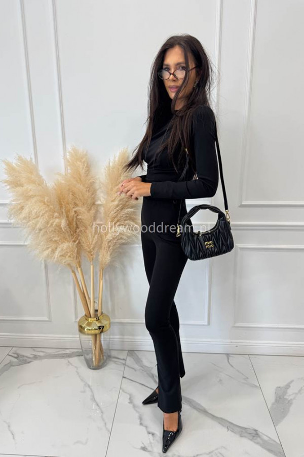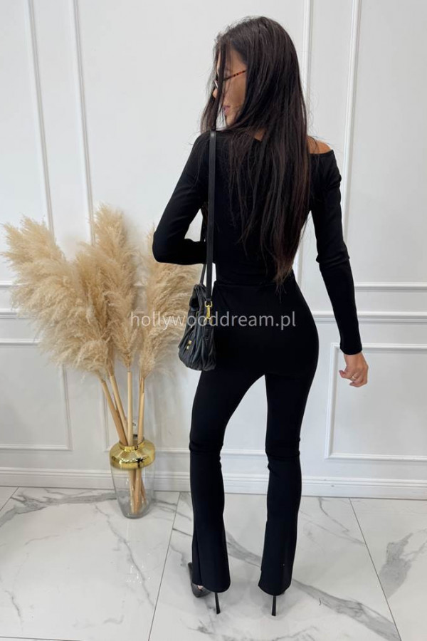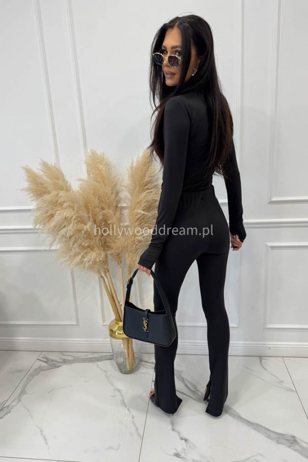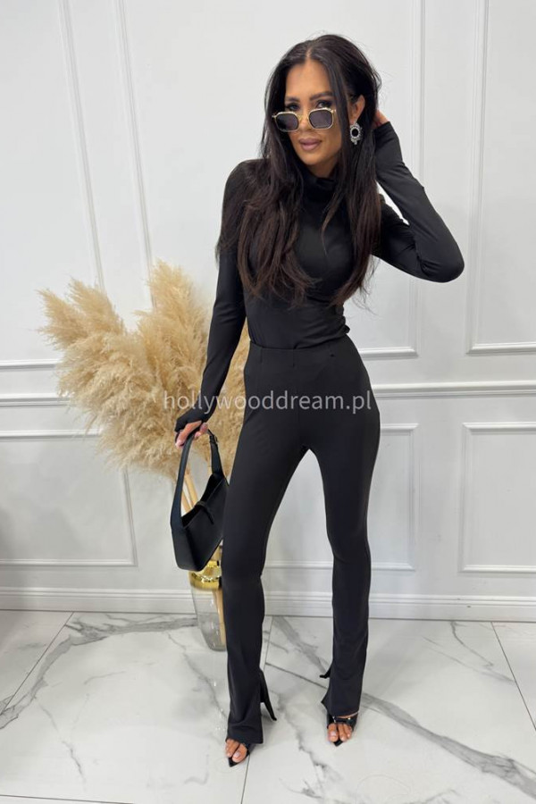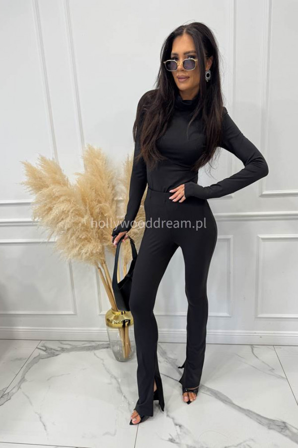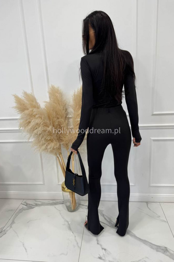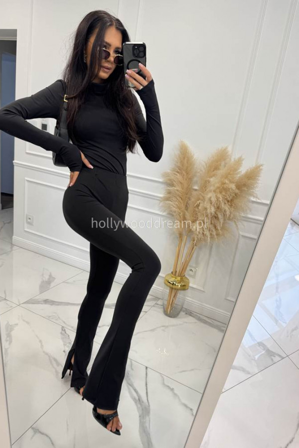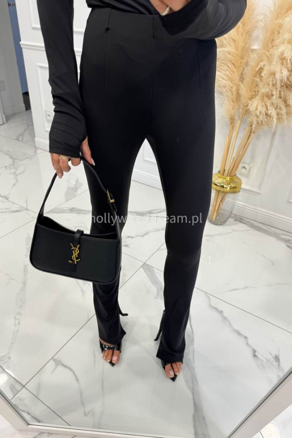 Legginsy dzwony z zamkiem na nogawce czarne BELLON 171