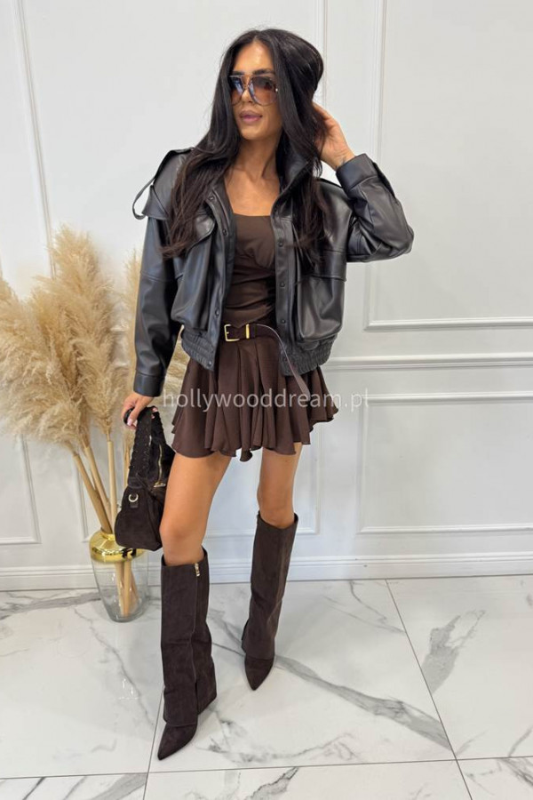 Spódnica NITA w brązowym odcieniu to kwintesencja kobiecości i lekkości! Wykonana w 50% z wiskozy, gwarantuje przewiewność i komfort noszenia. Rozkloszowany krój z delikatnymi zakładkami oraz falbanki na dole dodają uroku i subtelnej elegancji. Gumka w pasie dopasowuje się do sylwetki, podkreślając talię. Materiał jest lekko prześwitujący, bez podszewki – idealny na cieplejsze dni!