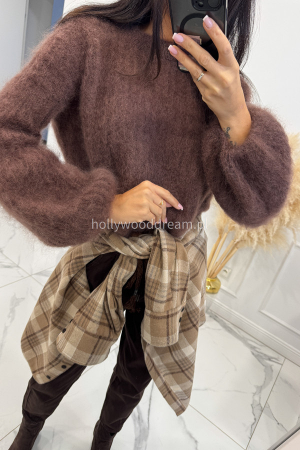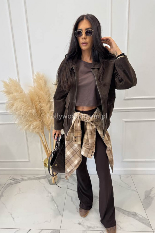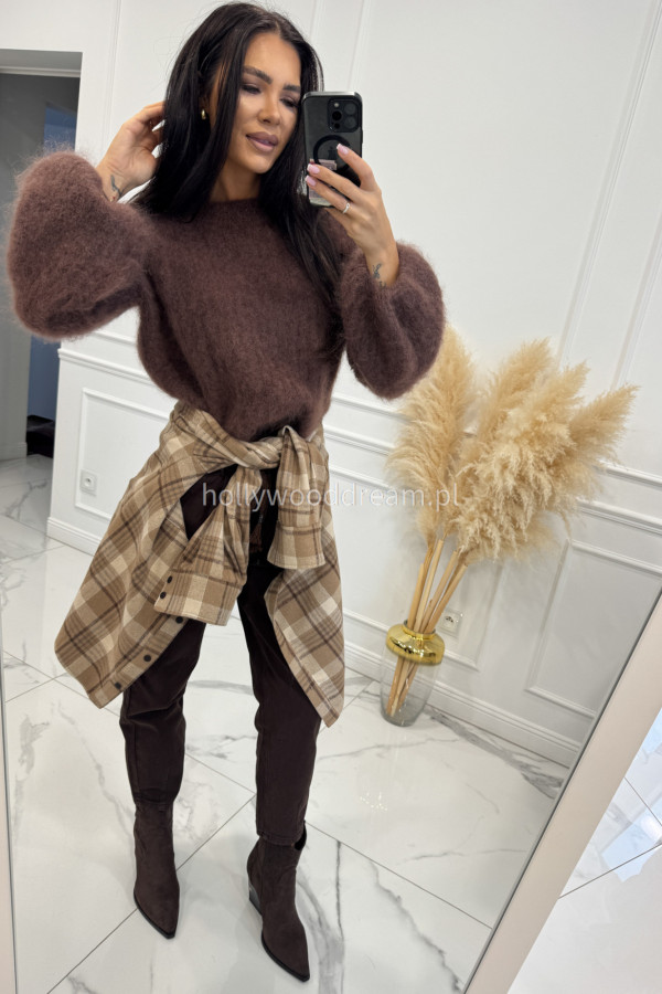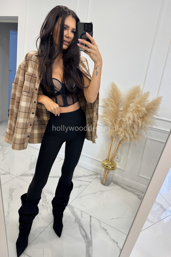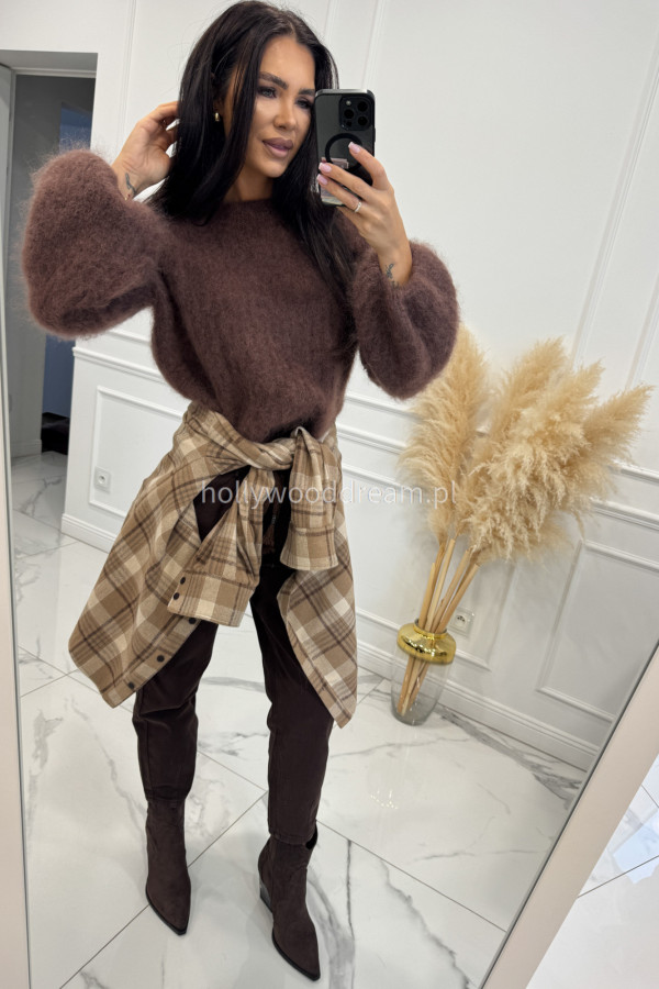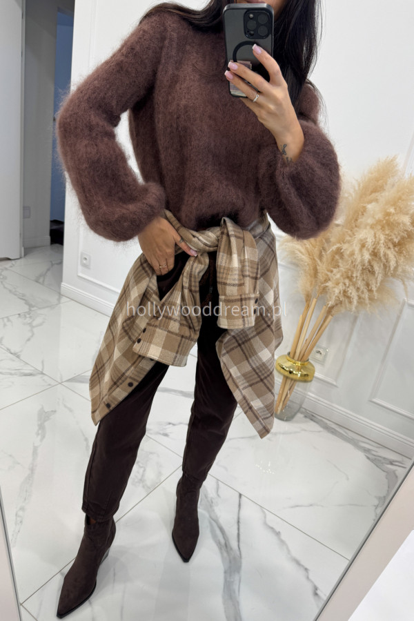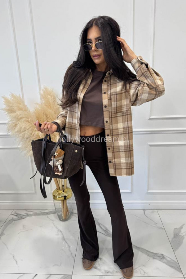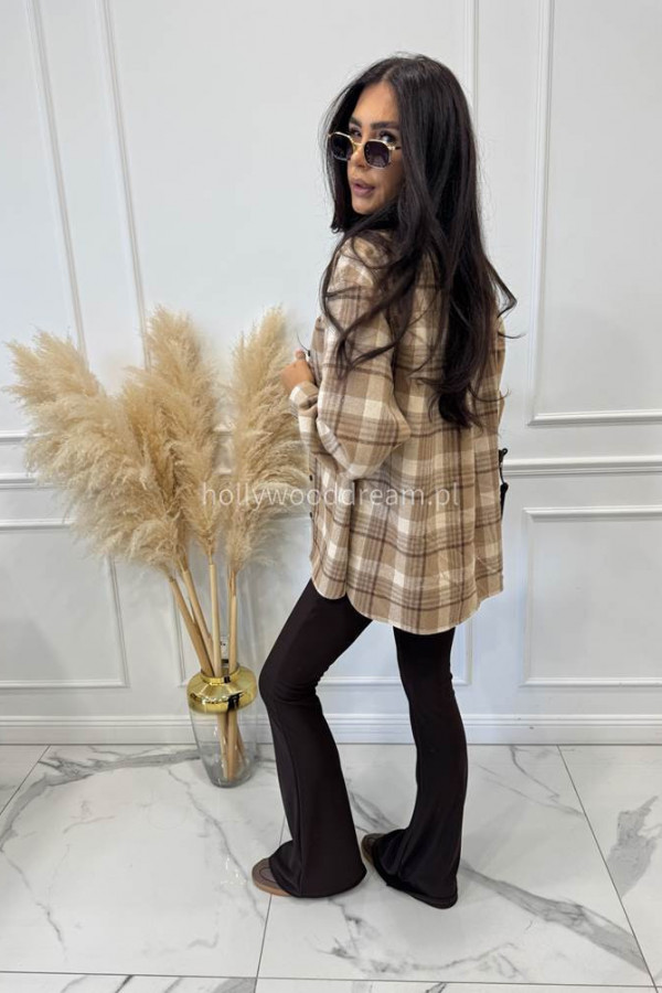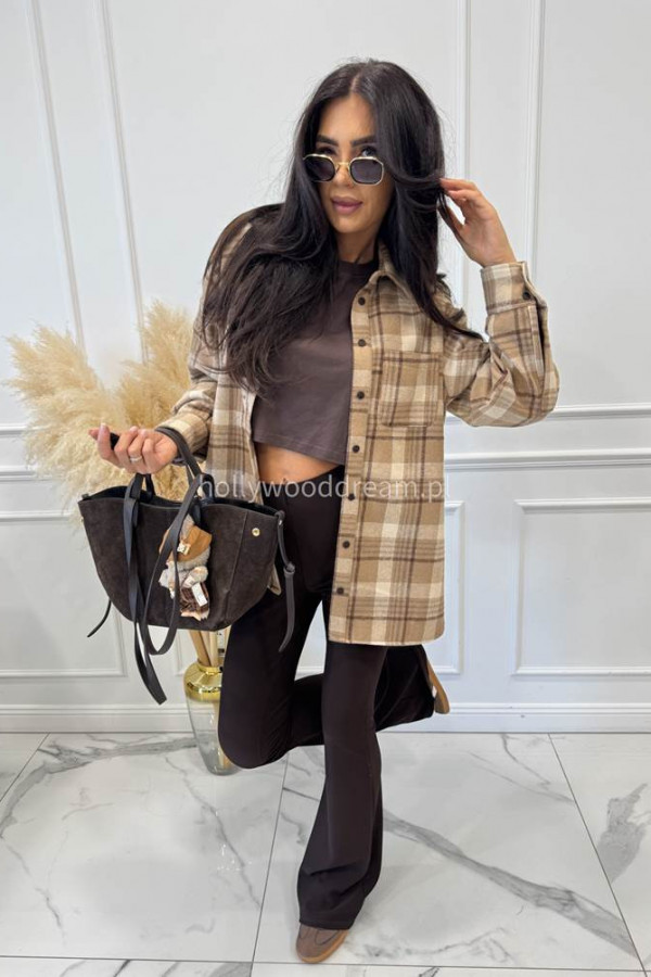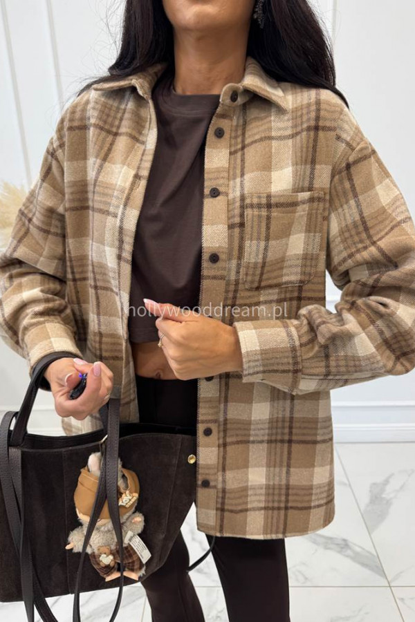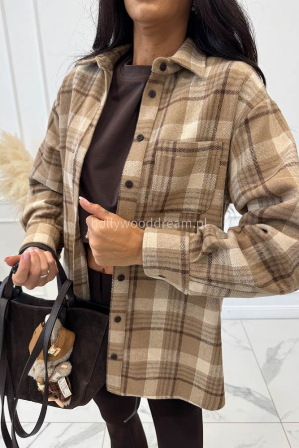- Koszula bawełniana w kratę oversize z kieszonką brązowo-beżowo-kremowa PAULA