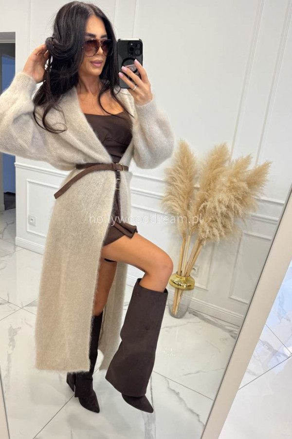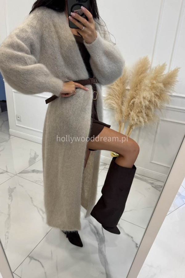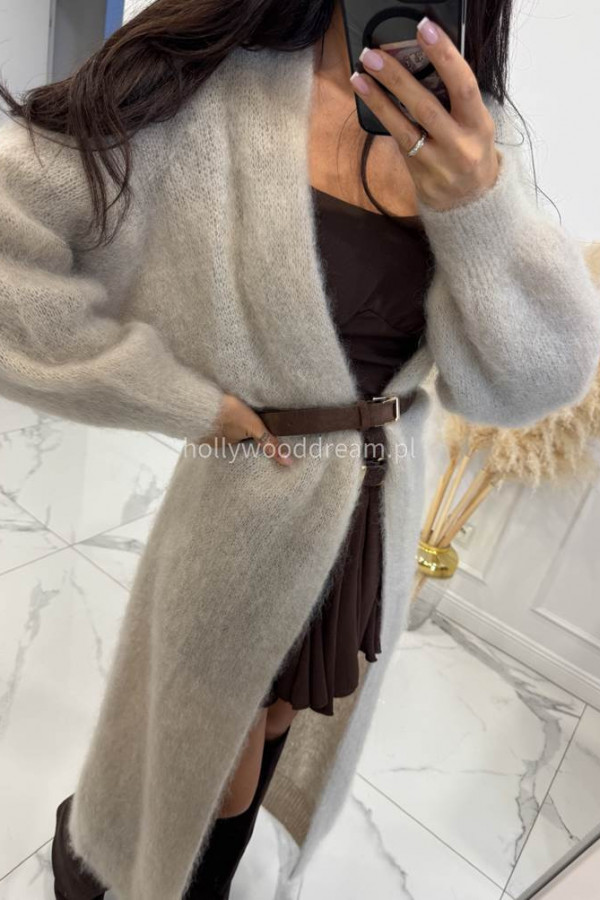 Kardigan długi kid moher jasny beż ANTONIO 06