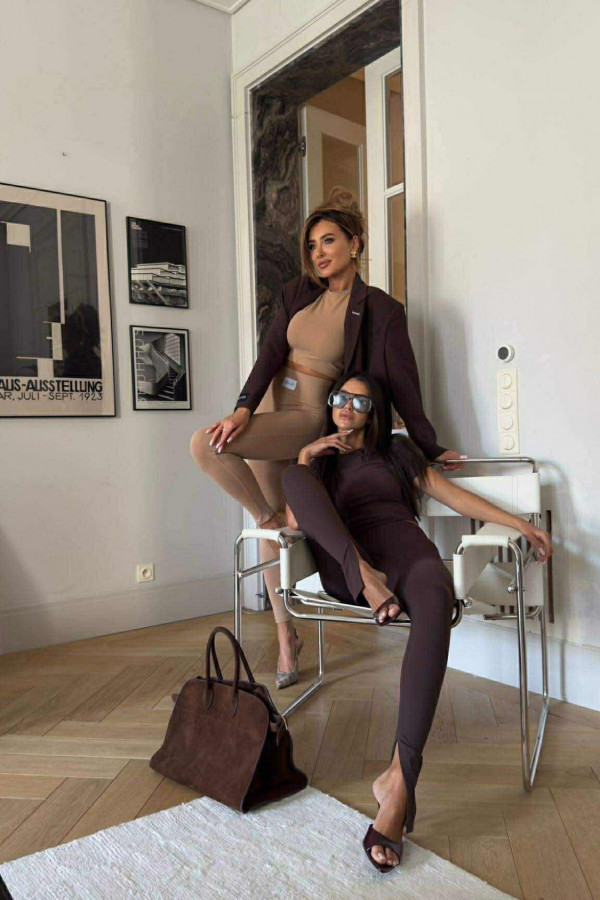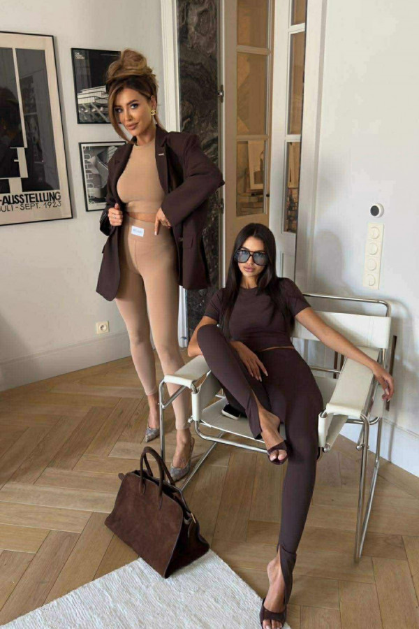 Komplet top + legginsy z rozcięciem czekoladowy KORDIAN 161