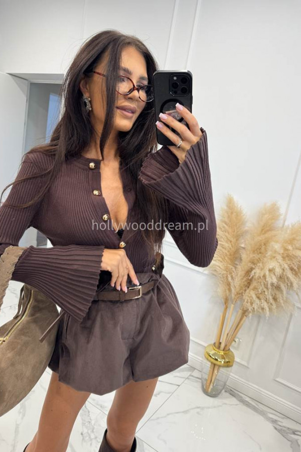 - Sweterek z rozszerzanymi rękawami i pozłacanymi guzikami czekoladowy KLARA