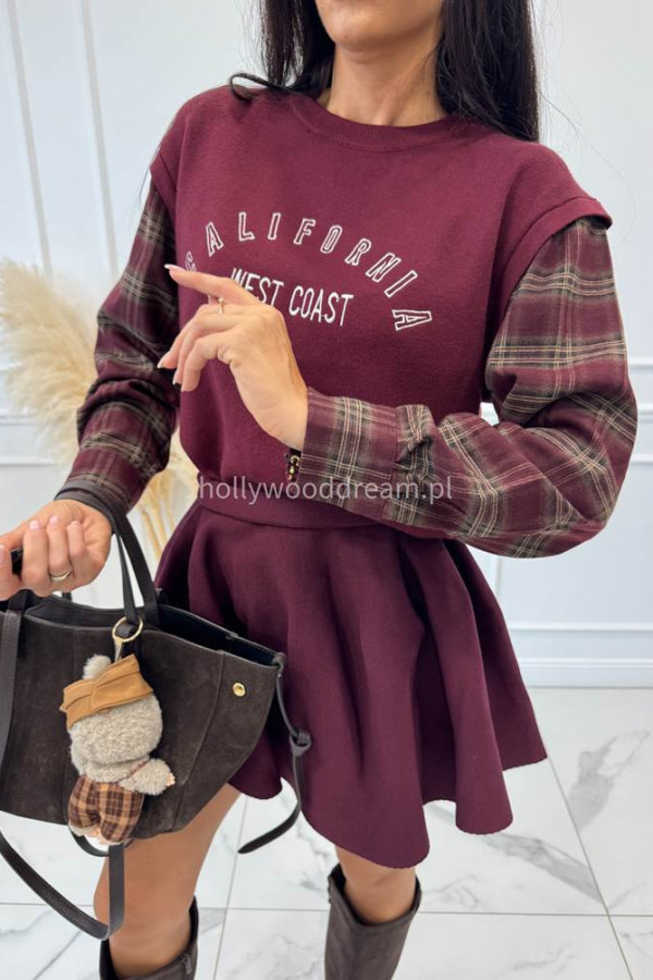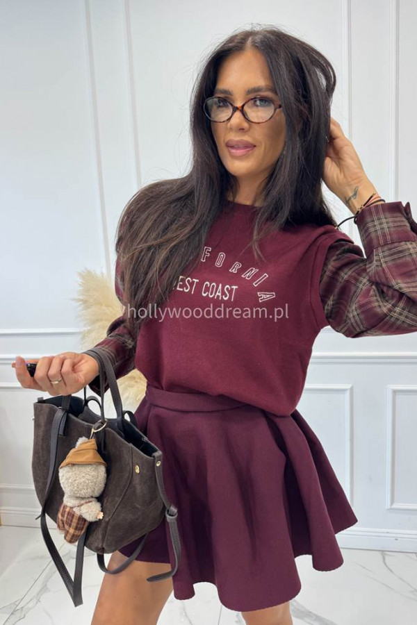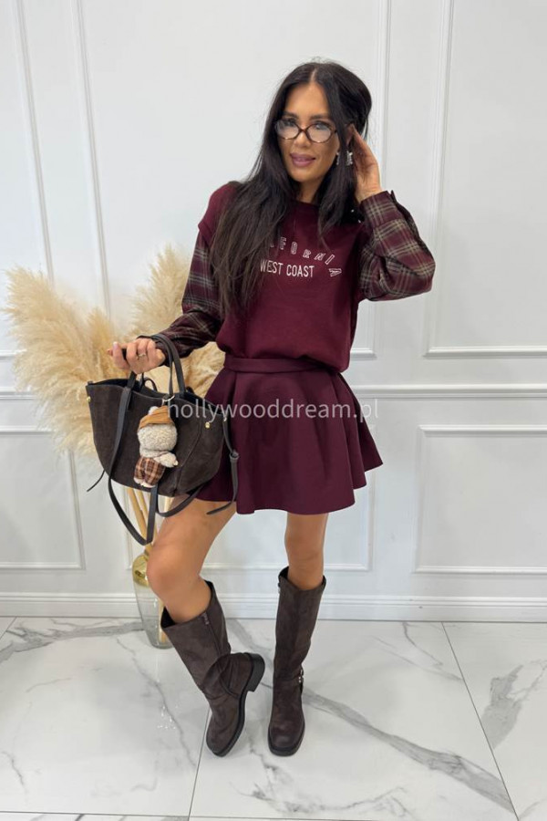 Spódniczka mini rozkloszowana sweterkowa bordowa MARLA 09
