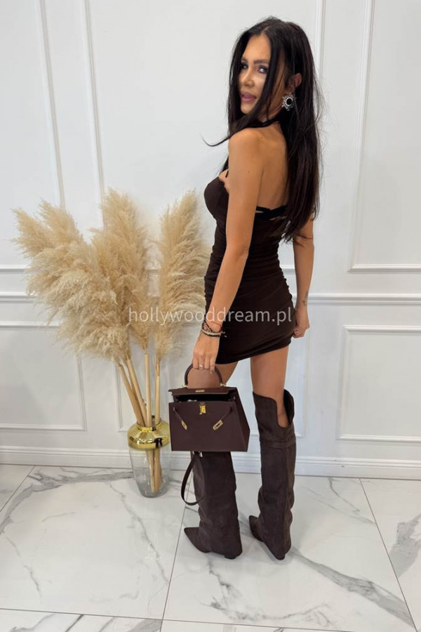 Sukienka midi z różyczką czekoladowa Rosen 25
