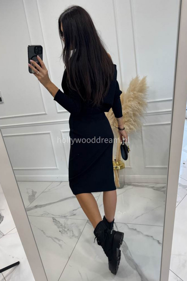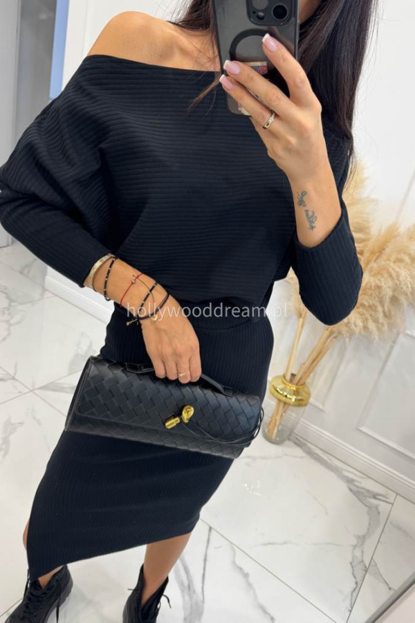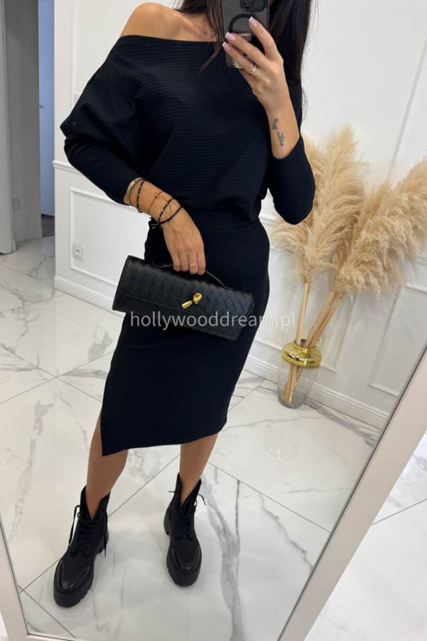 Komplet dzianinowy bluzka al'a nietoperz+spódnica midi czarny LUCJANNA 44