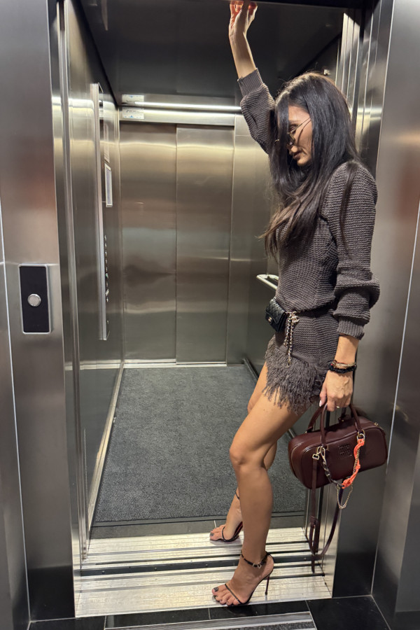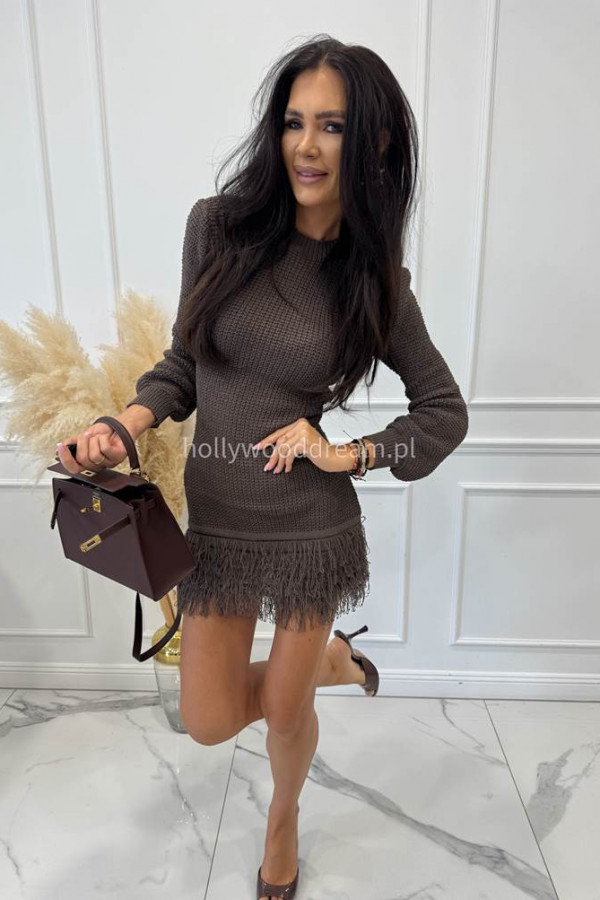 Sukienka dzianinowa z postrzępionym dołem czekoladowa KASJA 09