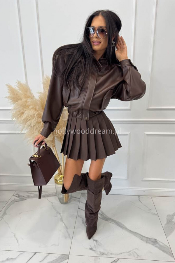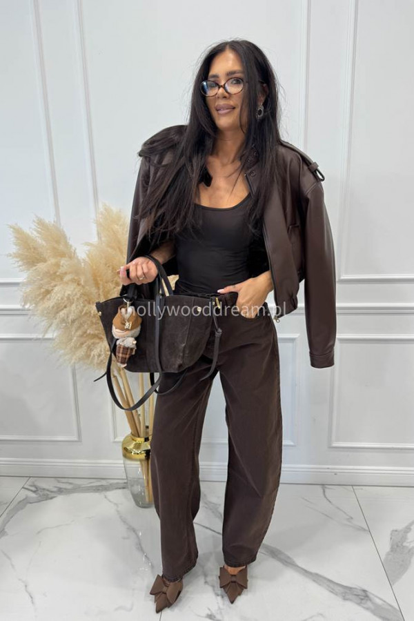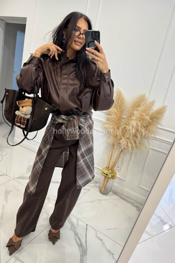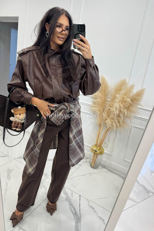- Kurtka oversize z eko skóry jasna czekolada Cameron161