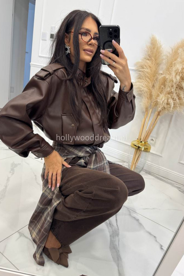 Kurtka oversize z eko skóry jasna czekolada Cameron 69